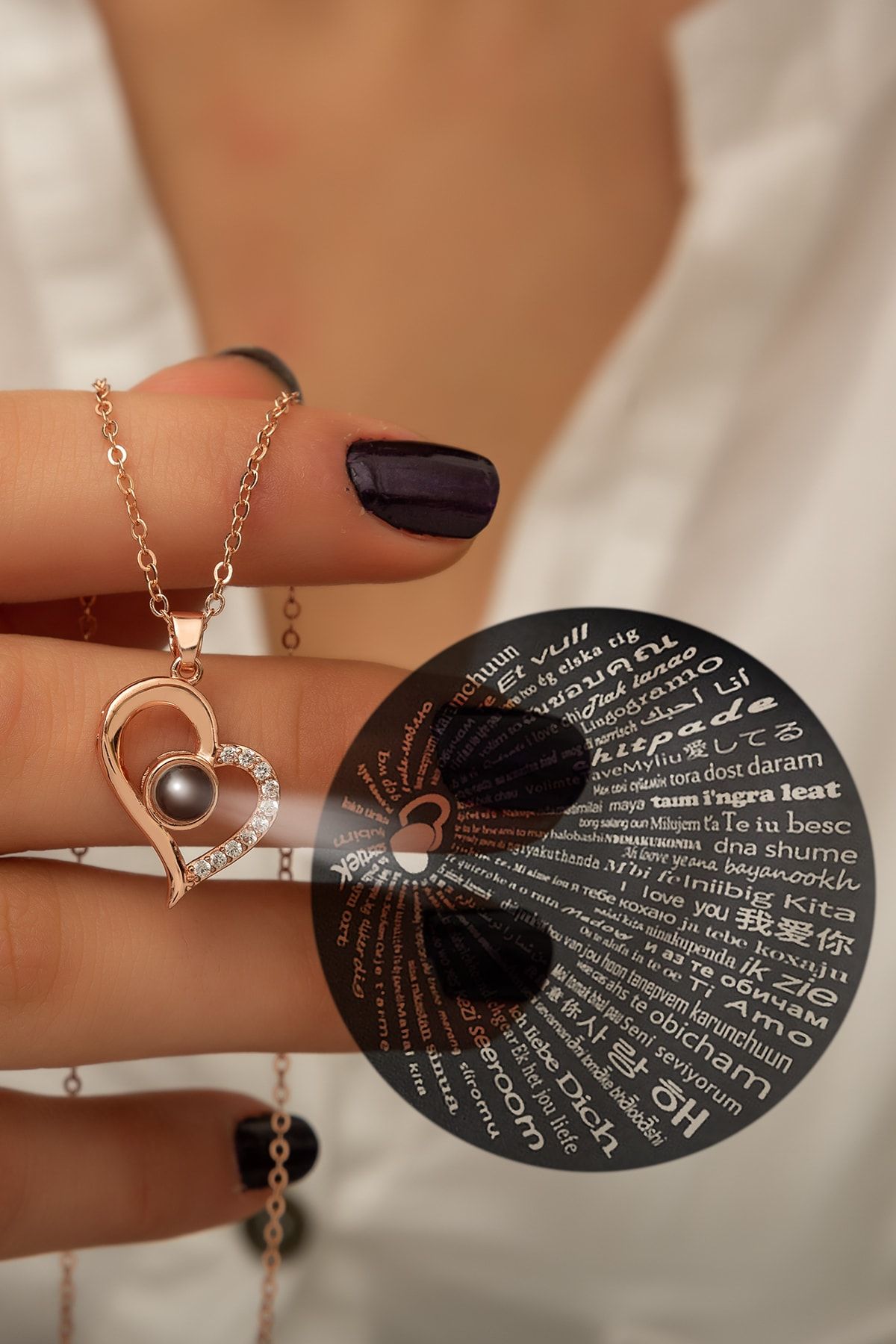 100 Dilde Seni Seviyorum Yazılı 925 Ayar Gümüş Rose Gold Kaplama Kolye - UVPS100404Maden : 925 Ayar Gümüş.Kaplama : Rose Altın.Renk : Altın.Taş : Nano Zirkon.Zincir uzunluğu : 43 cm.Ürün ağırlığı :2,44 Gr (+-).Teslimat: Papatya Silver tarafından Ürün ahşap hediye kutusunda gönderilecektir. Firmamız (İKO) İstanbul Kuyumcular Odasına Kayıtlıdır.