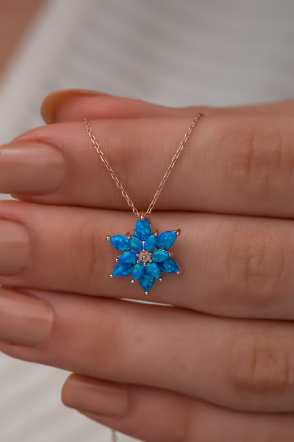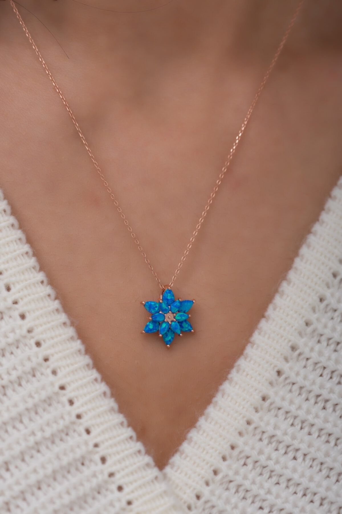 Etiketler925 Ayar Açık Mavi Opal Taşlı Gümüş Lotus Kolye