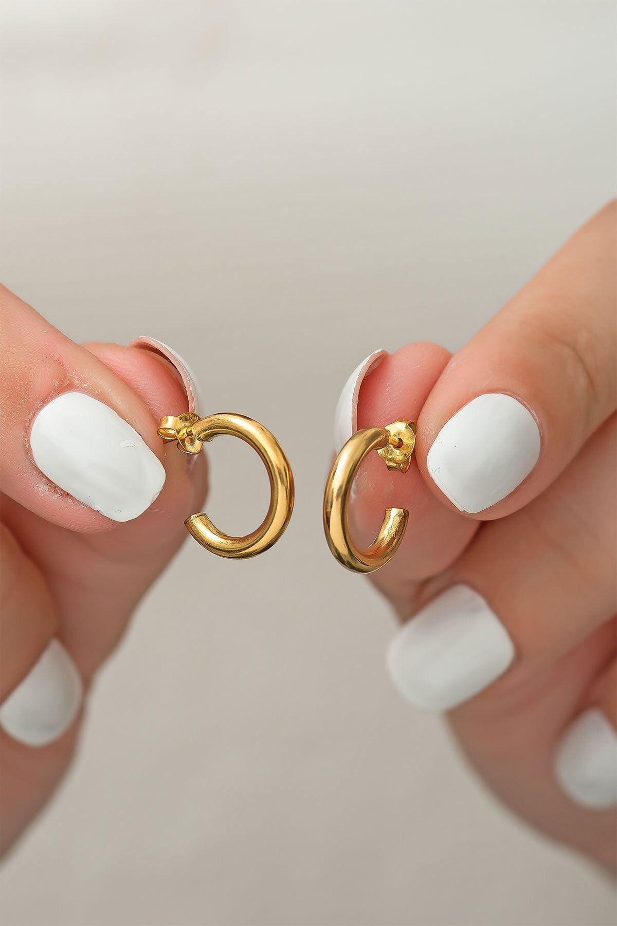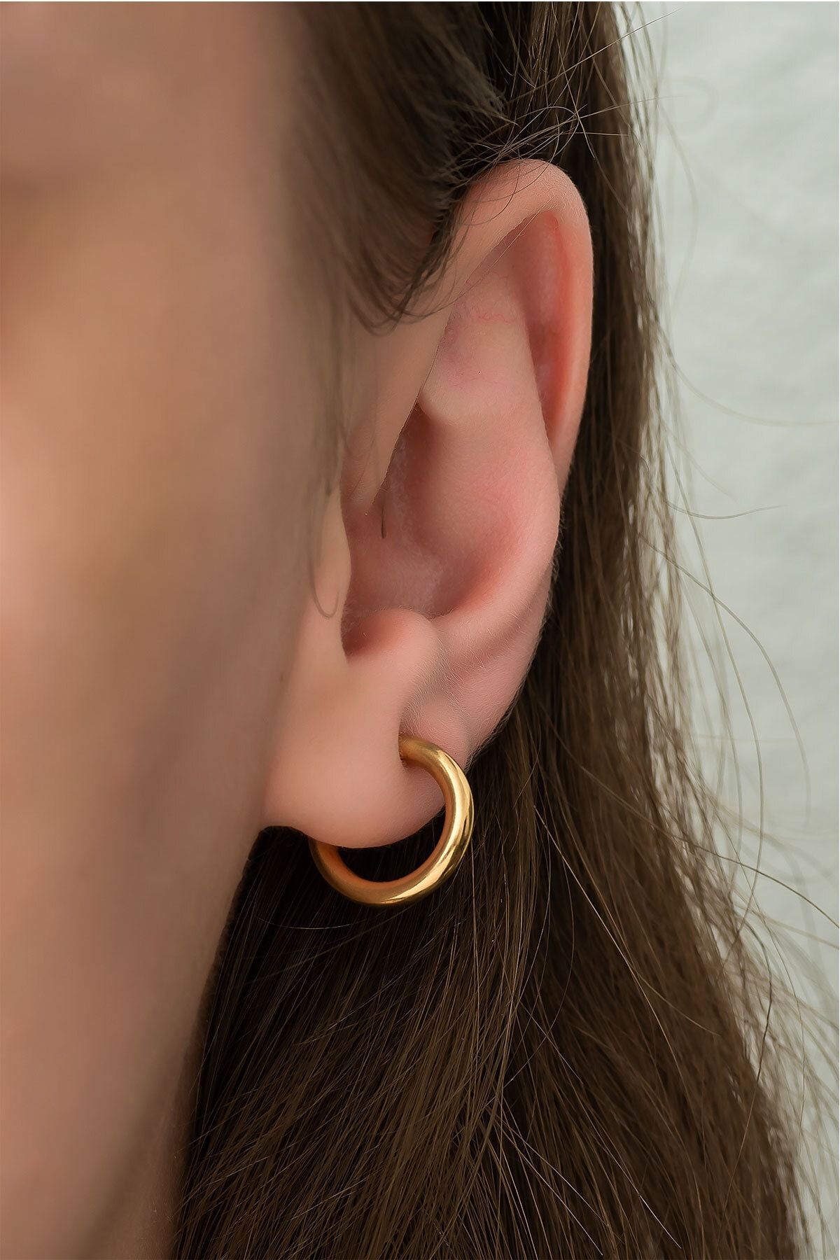 925 Ayar Altın Kaplama Çivili Halka Gümüş Kadın Küpe