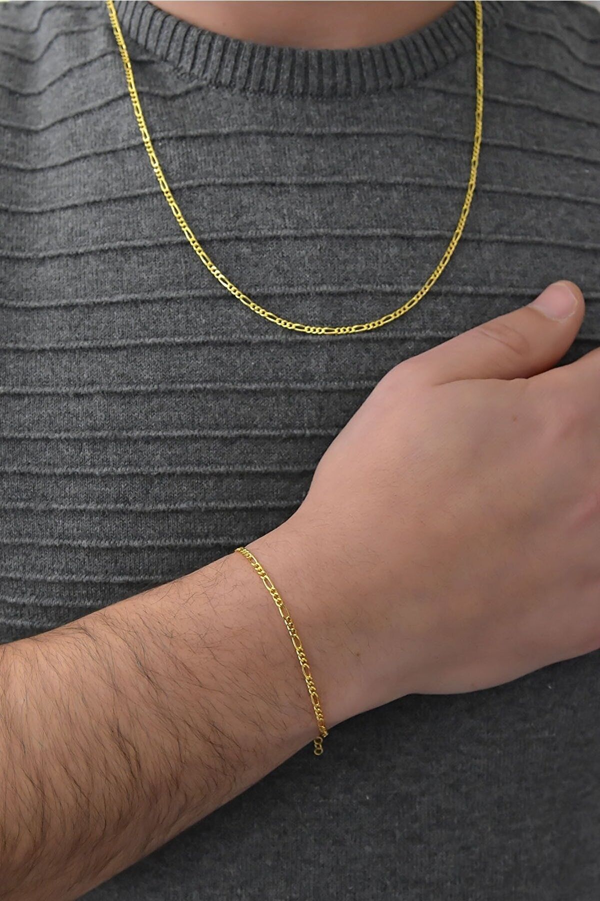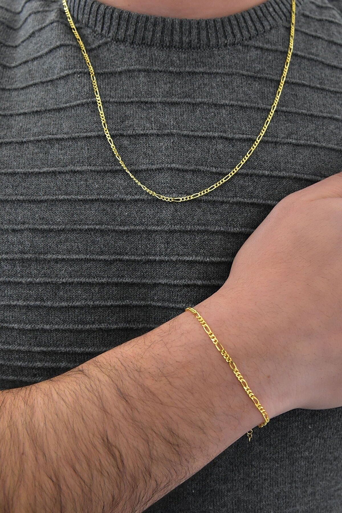 | Etiketler | 925 Ayar Altın Kaplama Erkek Figaro Gümüş Zincir Kolye Bileklik Set |