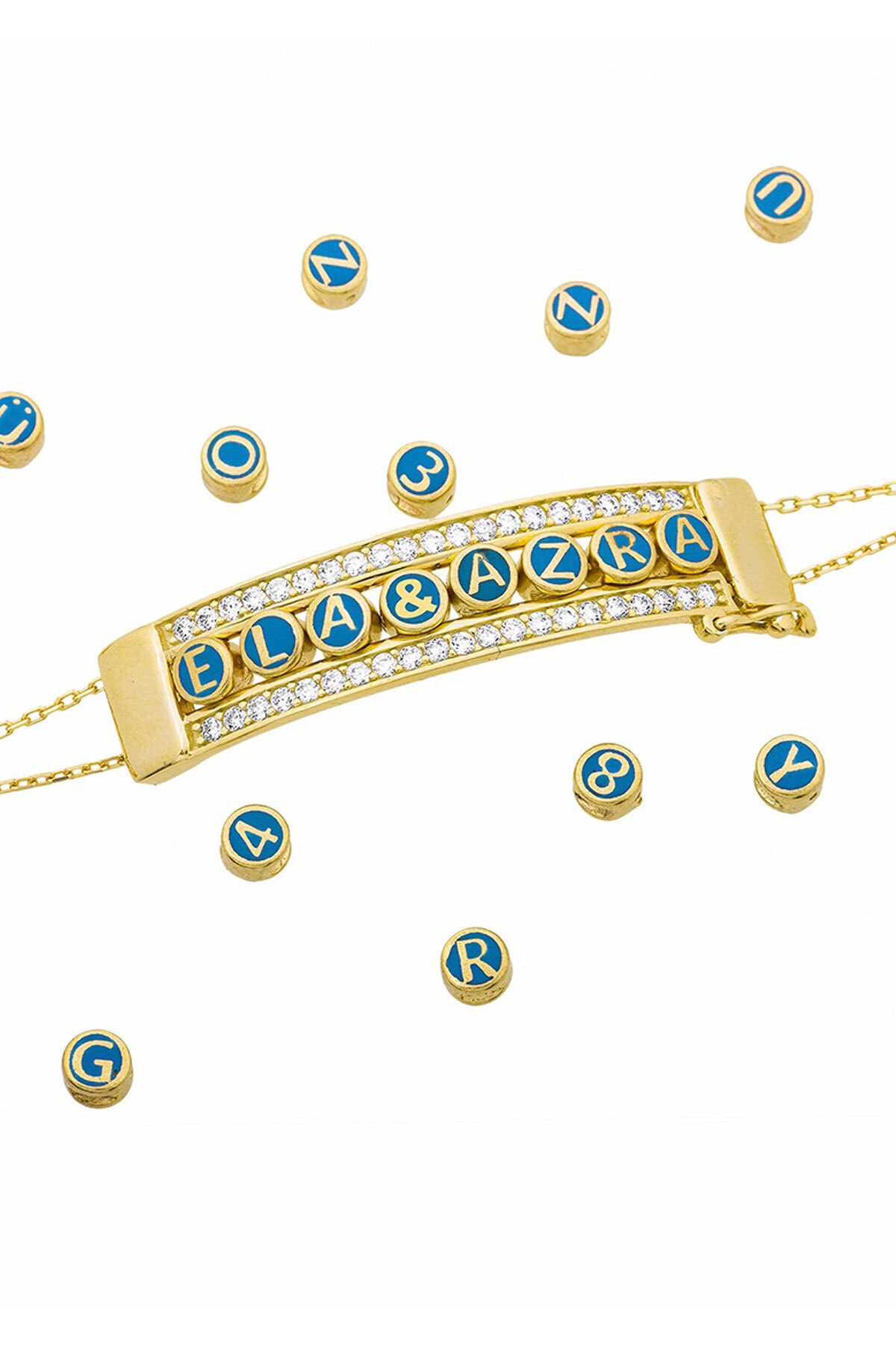 Lütfen İstenilen İsmi Satın Aldıktan Sonra Satıcıya Soru Sor Kısmından Bildiriniz.Zincir: Yetişkin(16 cm+ uzatma halkası)En: 4 cm.Boy: 8 mm.Taş Rengi ve Cinsi: Beyaz Zirkon.Maden Ayarı ve Rengi: 925 Ayar Gümüş, Altın Kaplama.Ağırlık: 6,00 gr. Gümüş ve değerli taşlar nedeniyle belirtilen ortalama ürün ağırlığında ± %5 sapma olabilmektedir.Teslimat: Ürün ahşap hediye kutusunda gönderilecektir.