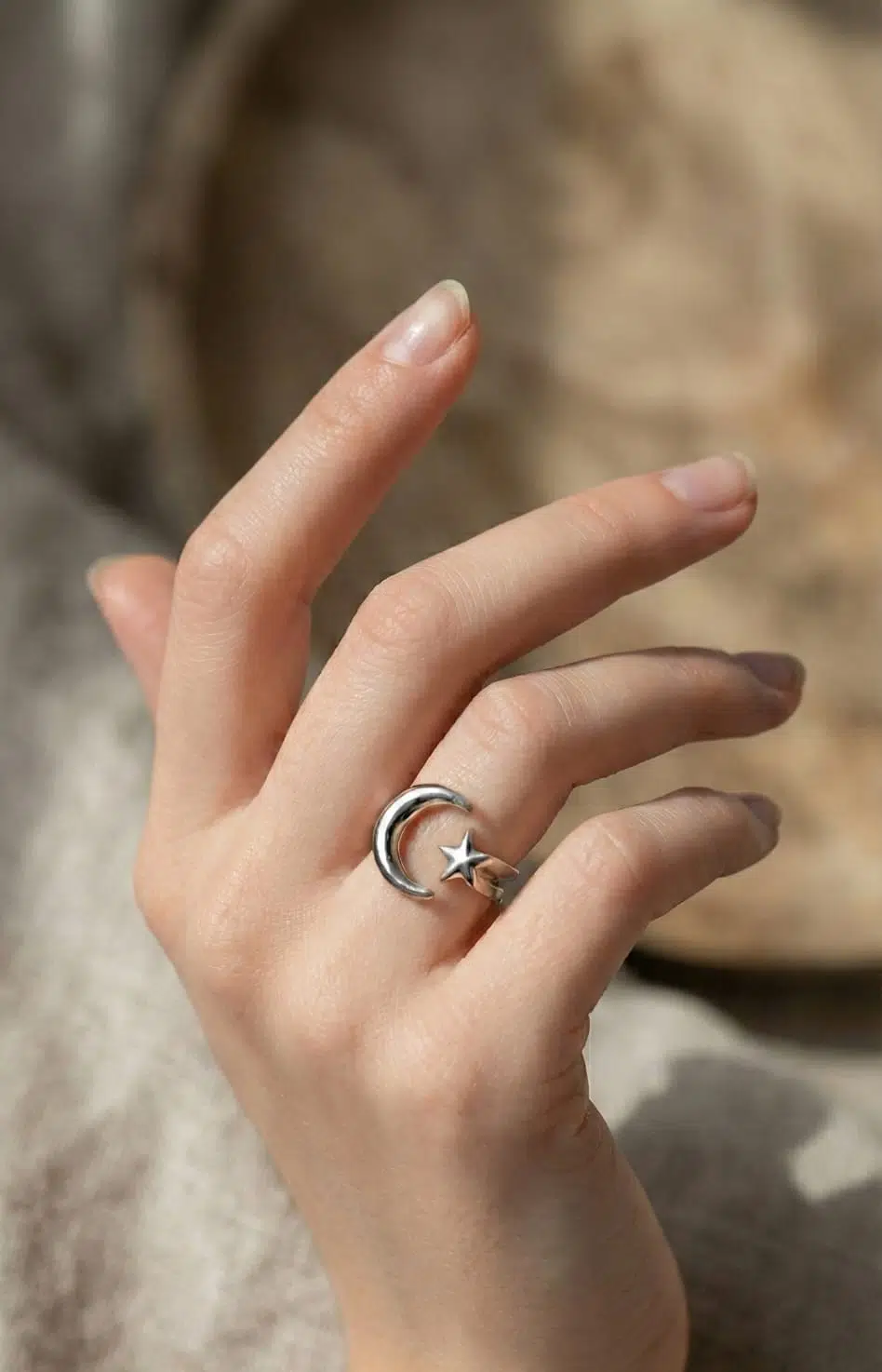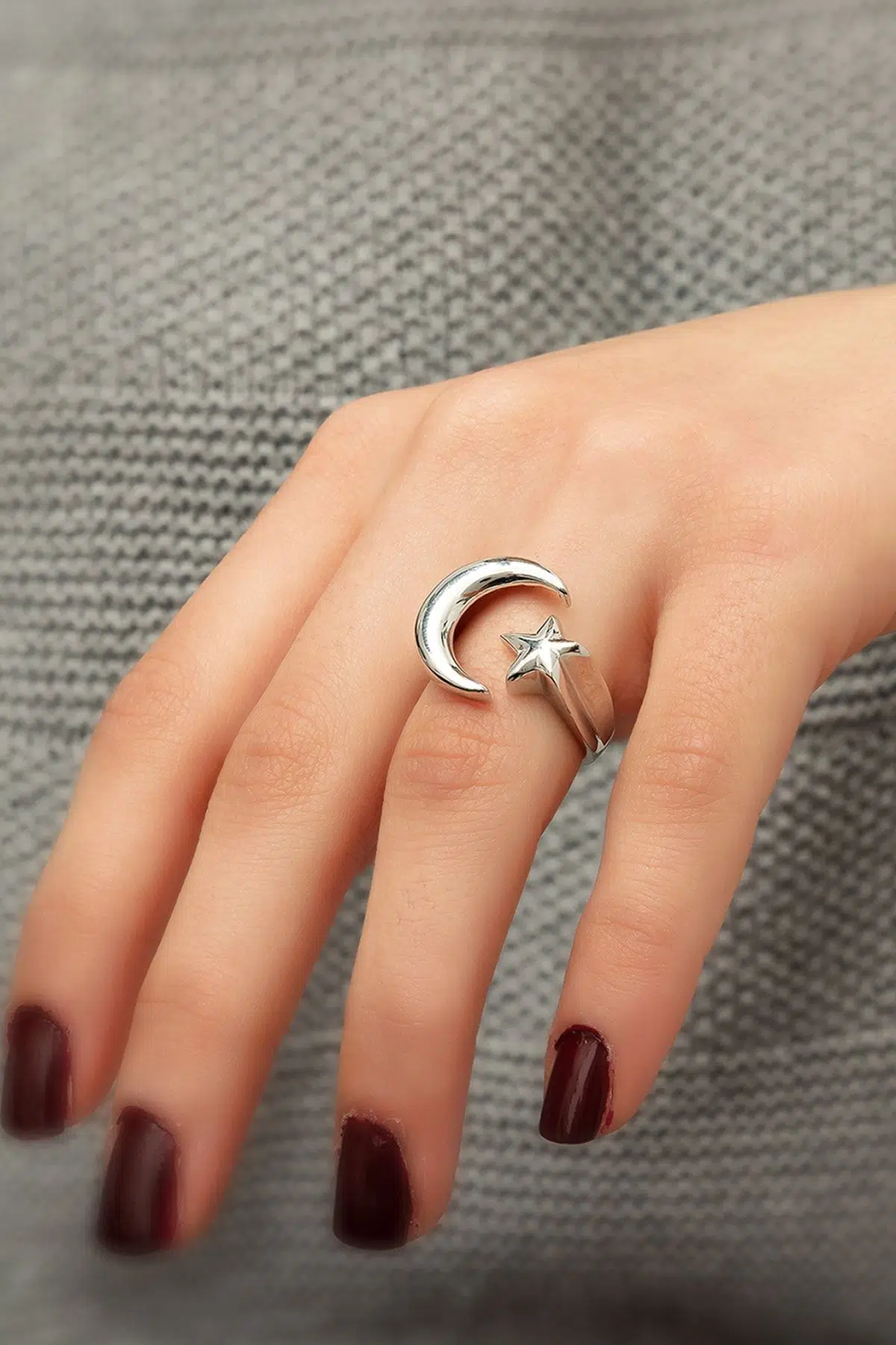925 Ayar Ay Yıldız Gümüş Bayan YüzükMaden : 925 Ayar gümüşKaplama : Rodyum KaplamaRenk : GümüşÖlçü: AyarlanabilirÜrün ağırlığı : 7.00 Gr ( +-).Teslimat: Papatya Silver tarafından Ürün ahşap hediye kutusunda gönderilecektir.