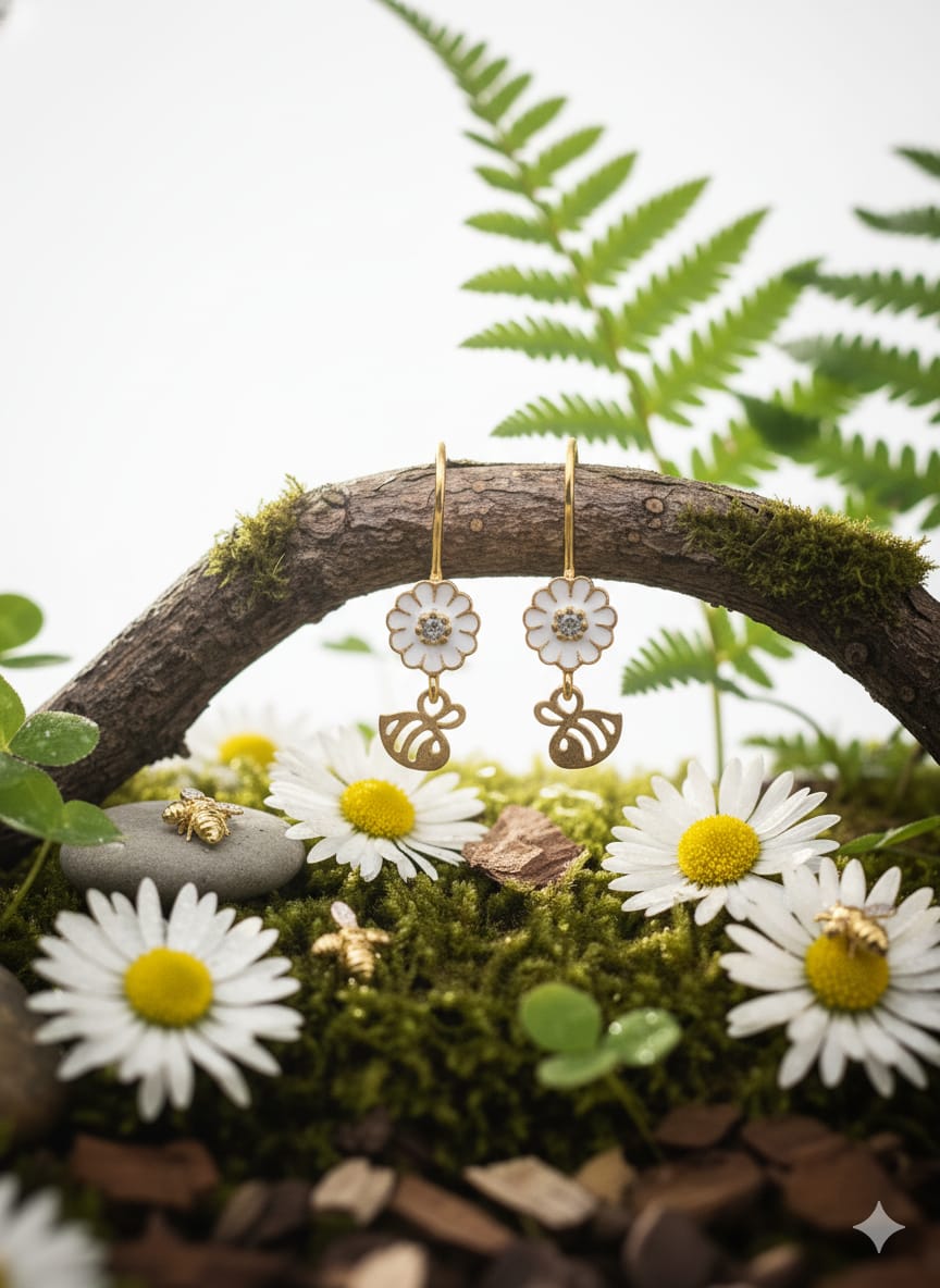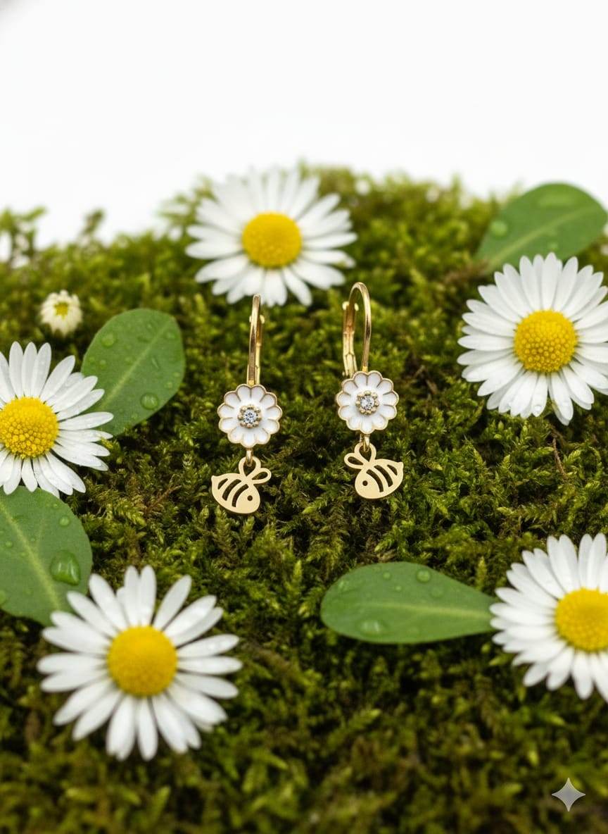 925 Ayar Papatya Silver arı küpe.rose.gold.rodaj