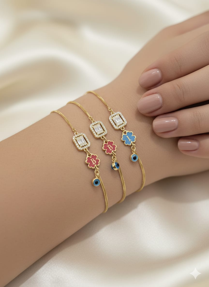 kişiye özel harfli baget taşlı nazarlı bileklik
