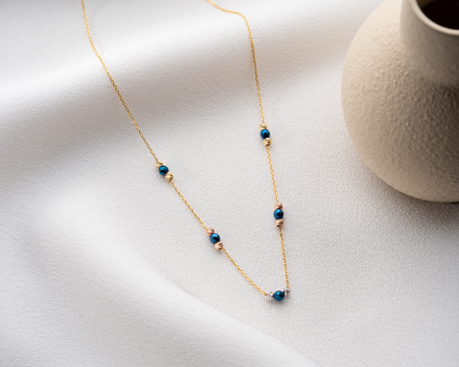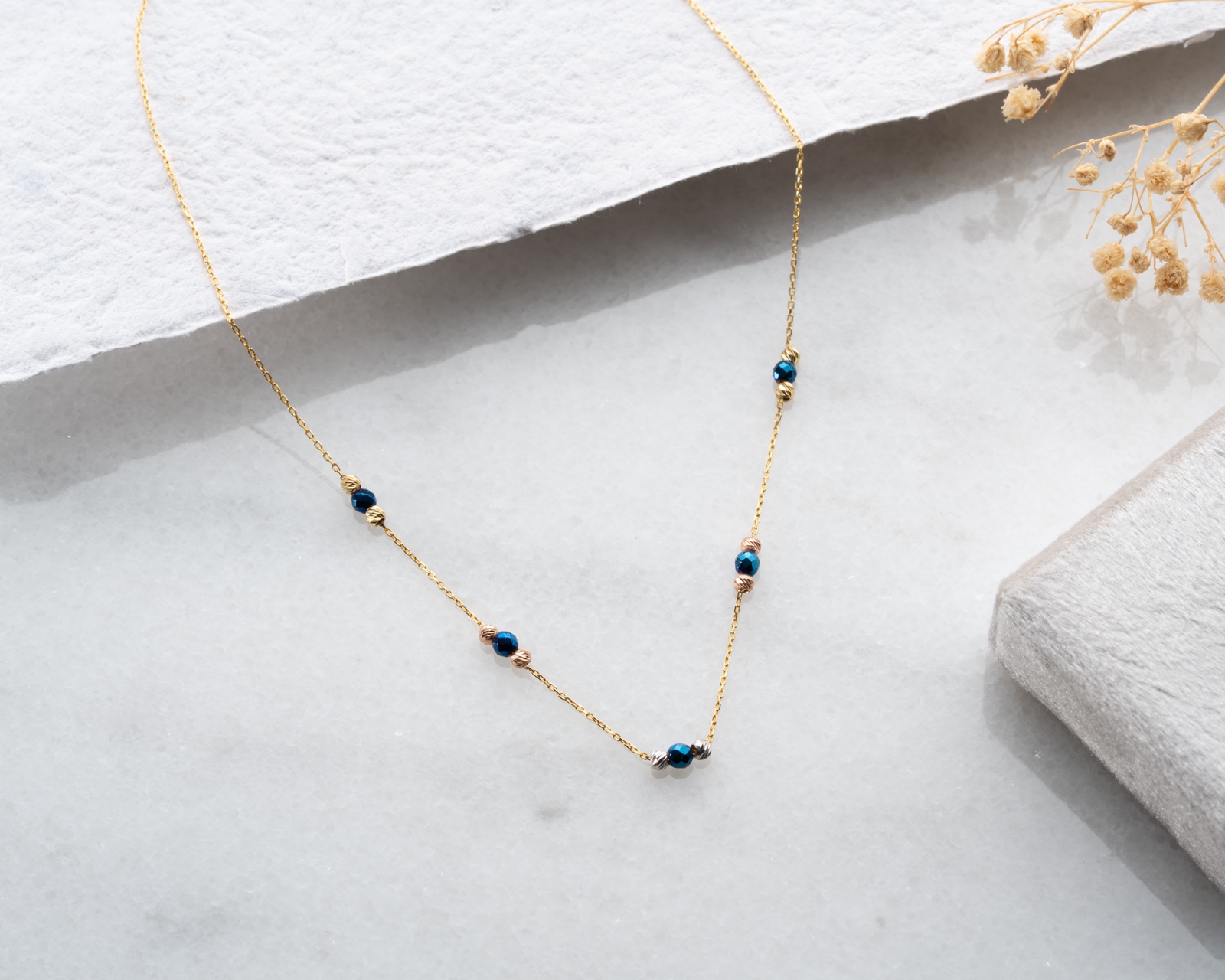 925 Ayar Gümüş Gold Kaplama Toplu Zincir Kalemli El Ayak Izi Motifli Plaka Kolye