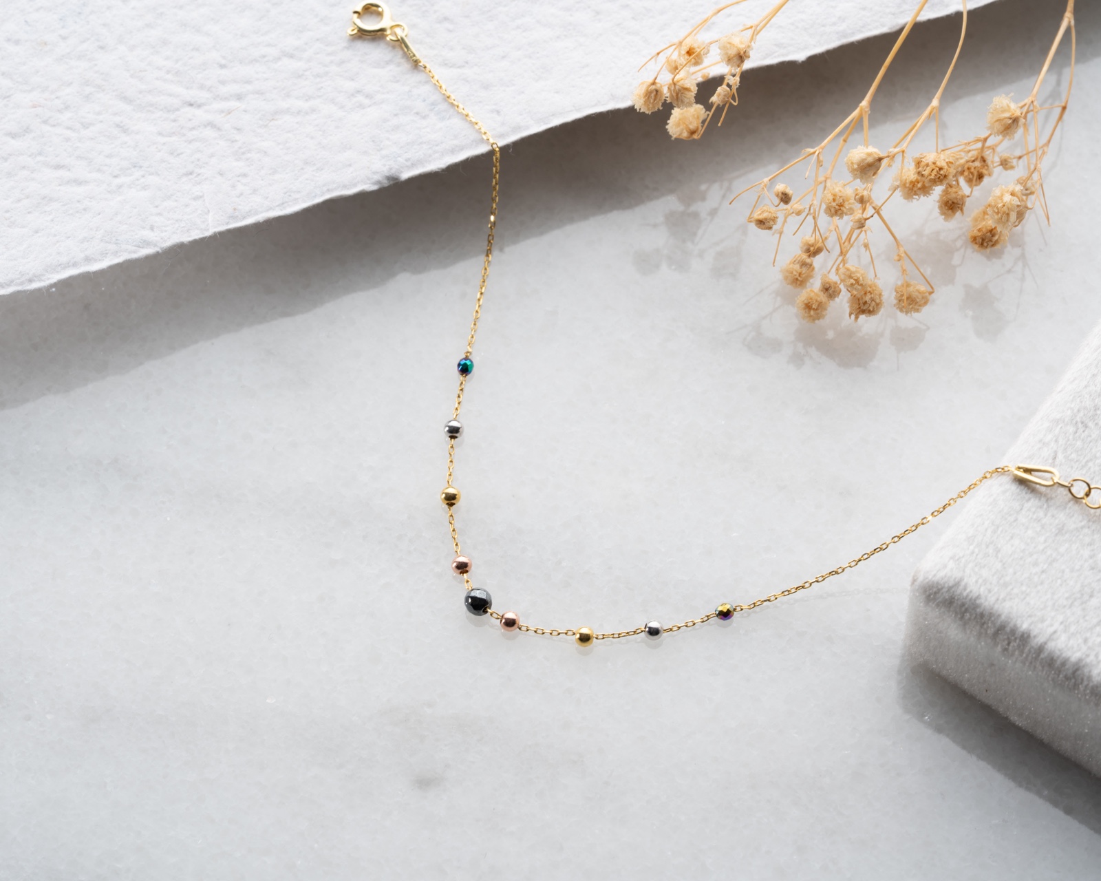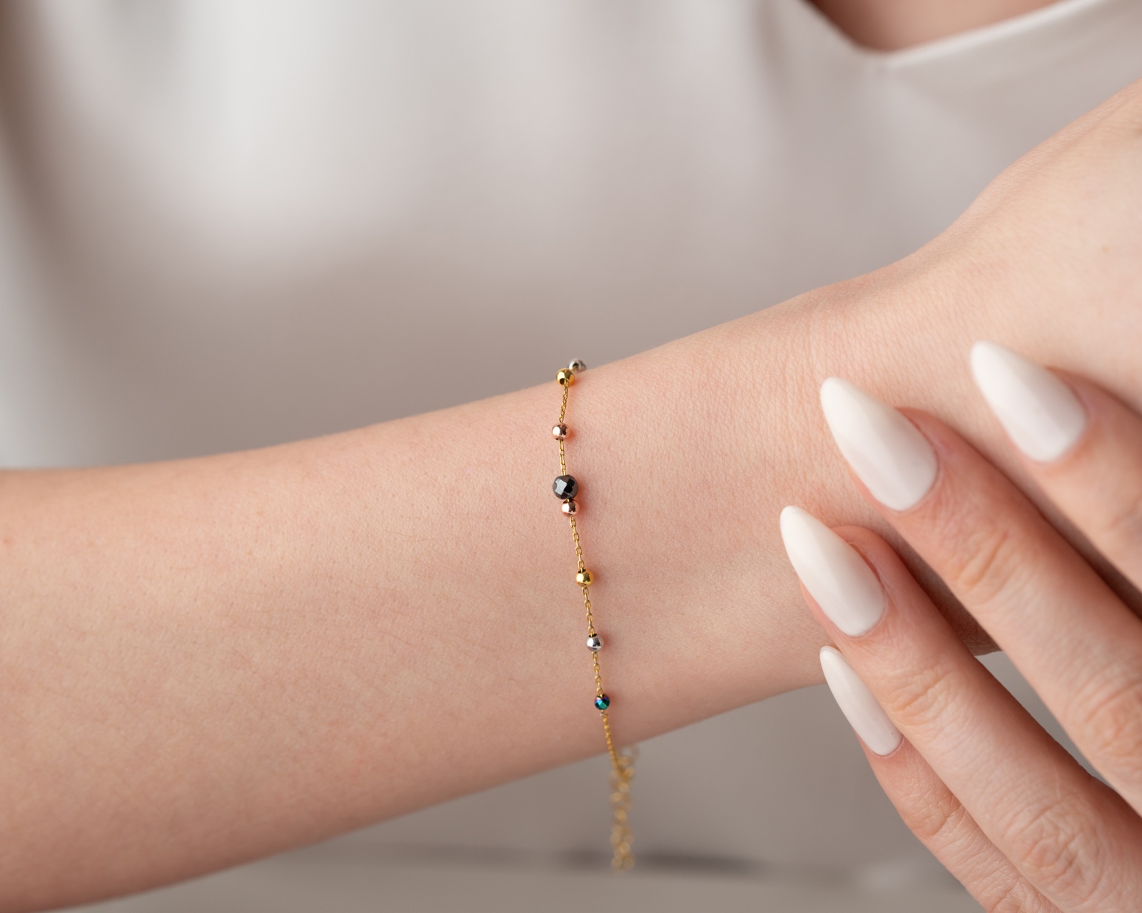 925 Ayar Gümüş Gold Kaplama Renkli Taşlı Su Yolu Bileklik