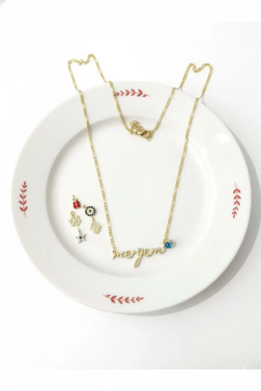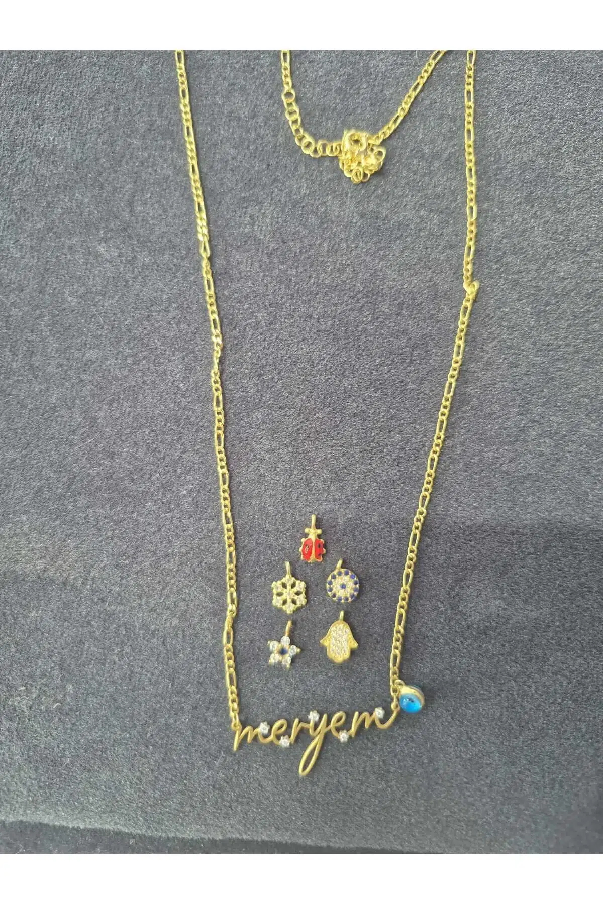 925 Ayar Papatya Silver Figaro Zincirli Taşlı İmza Kolye.rose.gold.rodaj