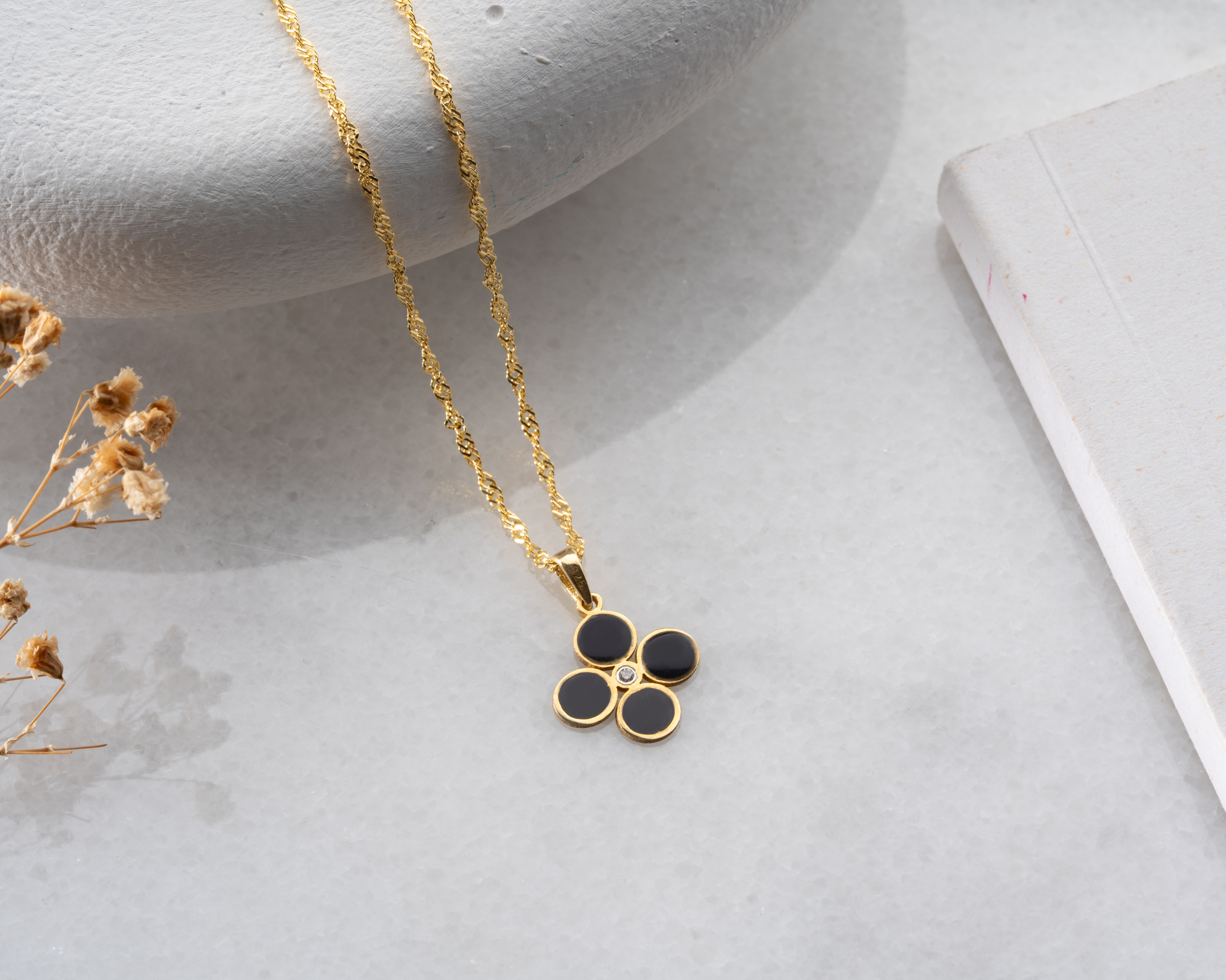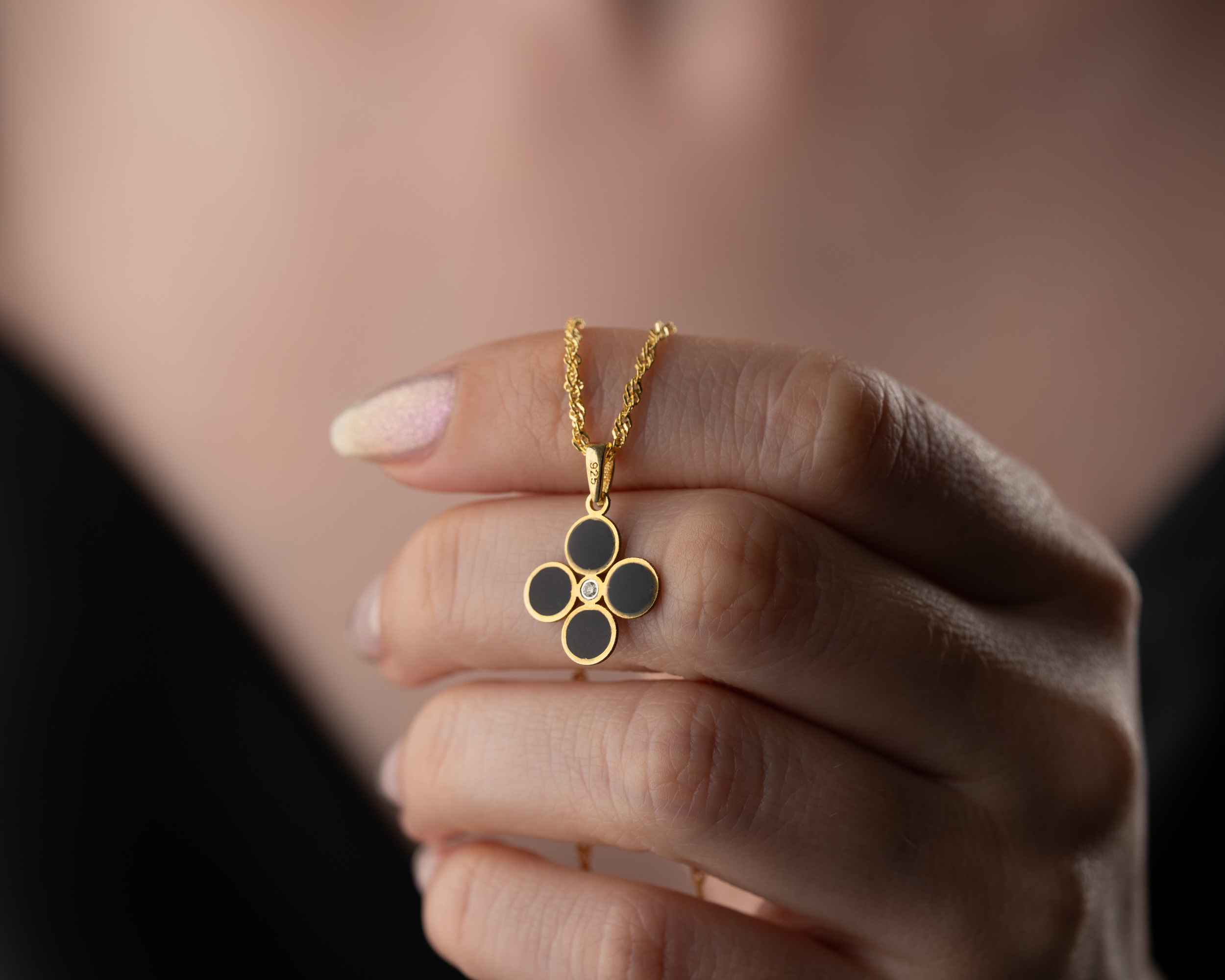 925 Ayar Gümüş Gold Kaplama Zirkon Yeşil Taşlı Nazar Gözlü Mineli Fatma Eli Kolye