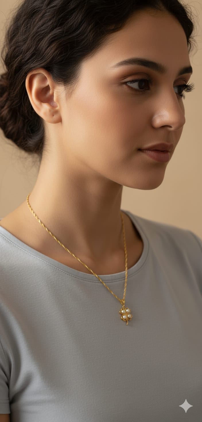 925 Ayar Gümüş Gold Renk Yonca Küpe Uğur Böceği Sallantılı