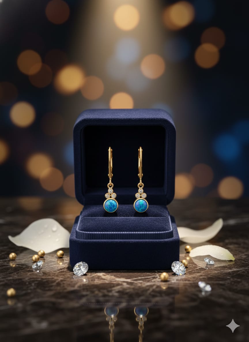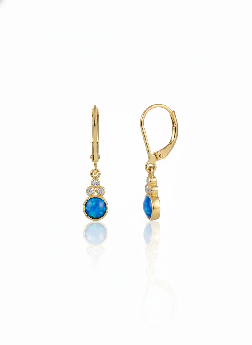 925 Ayar Papatya Silver mavi opal taşlı küpe.rose.gold.rodaj