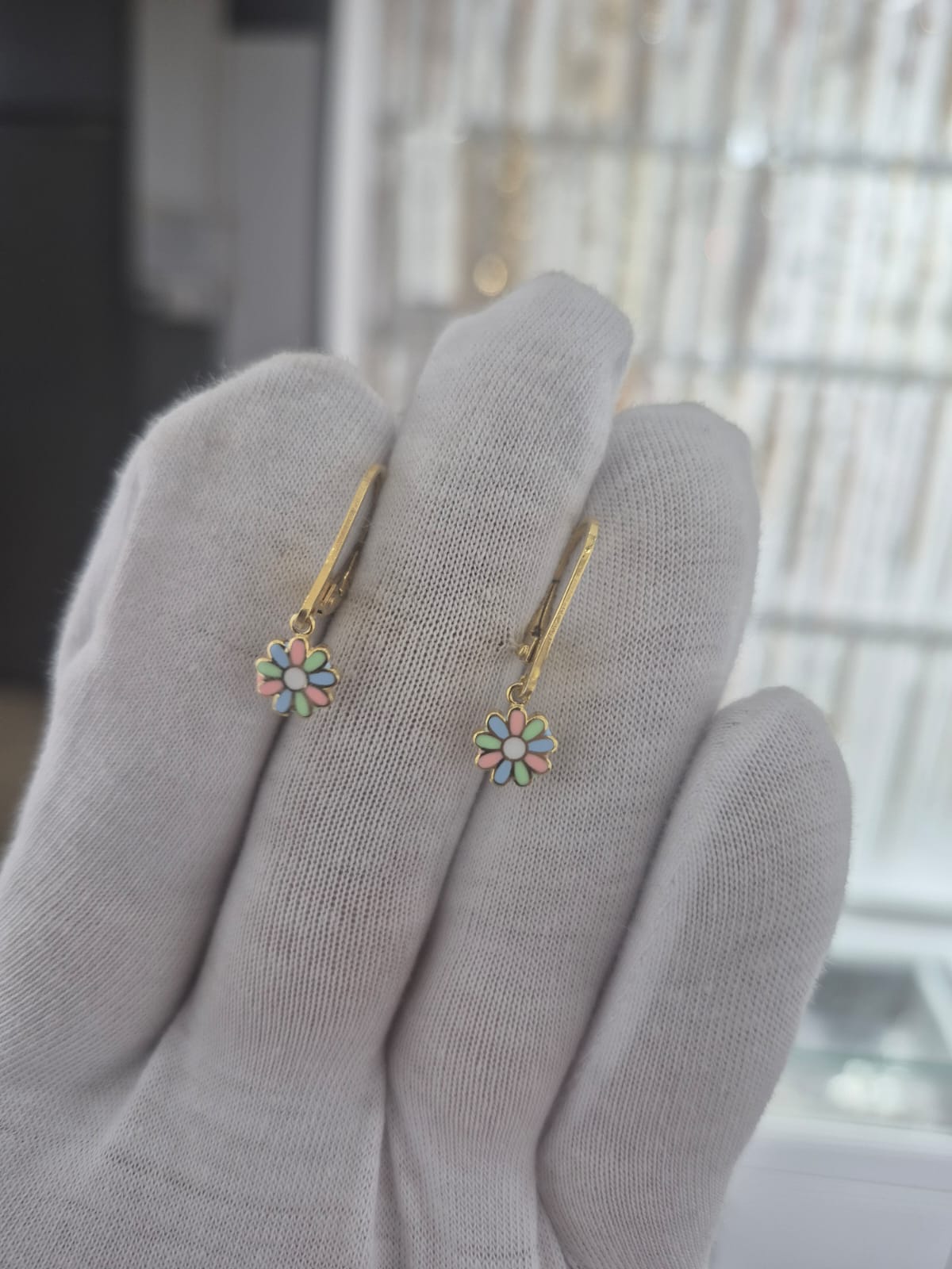 925 Ayar Flamingo Silver renkli papatya küpe.rose.gold.rodaj