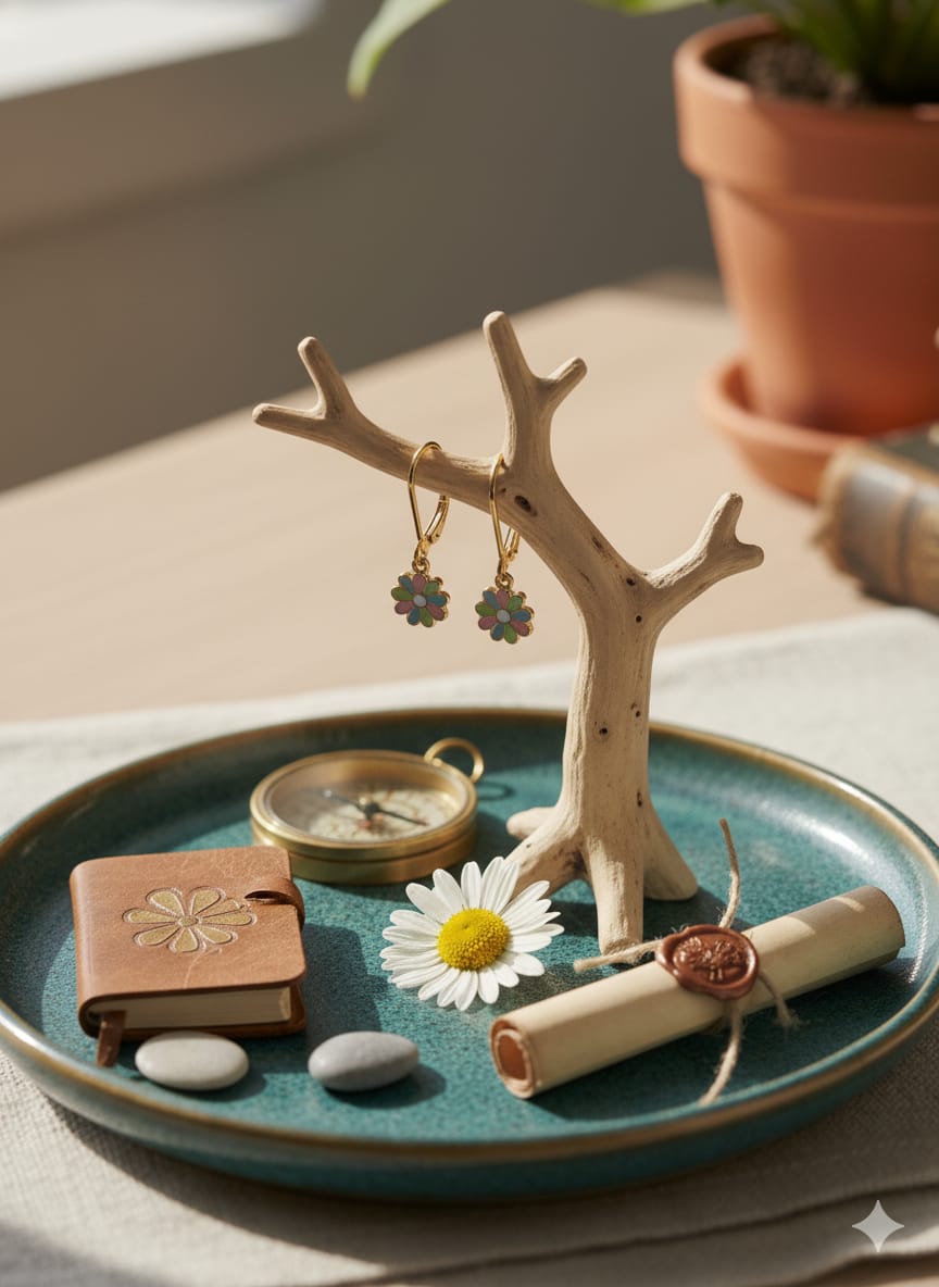 925 Ayar Papatya Silver renkli papatya küpe.rose.gold.rodaj
