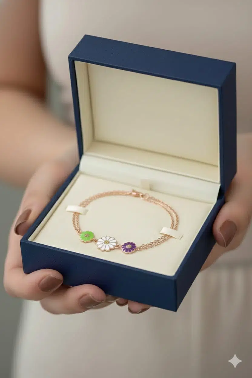 Maden Ayar: 925 Ayar Gümüş. Maden Kaplama: Rose Altın. Büyük Paptaya En Boy: 1 x 1 cm. Küçük Papatya 0,7 x 0,7 cm. Taş: Zirkon. Ürün Ağırlığı: 1,85 Gr. ( +-). Gümüş ve değerli taşlar nedeniyle belirtilen ortalama ürün ağırlığında ± %5 sapma olabilmektedir. Teslimat: Ürün kutu ile gönderilecektir. Kullanım: Parfüm,dezenfektan,çamaşır suyu gibi kimyasallardan uzak tutunuz.