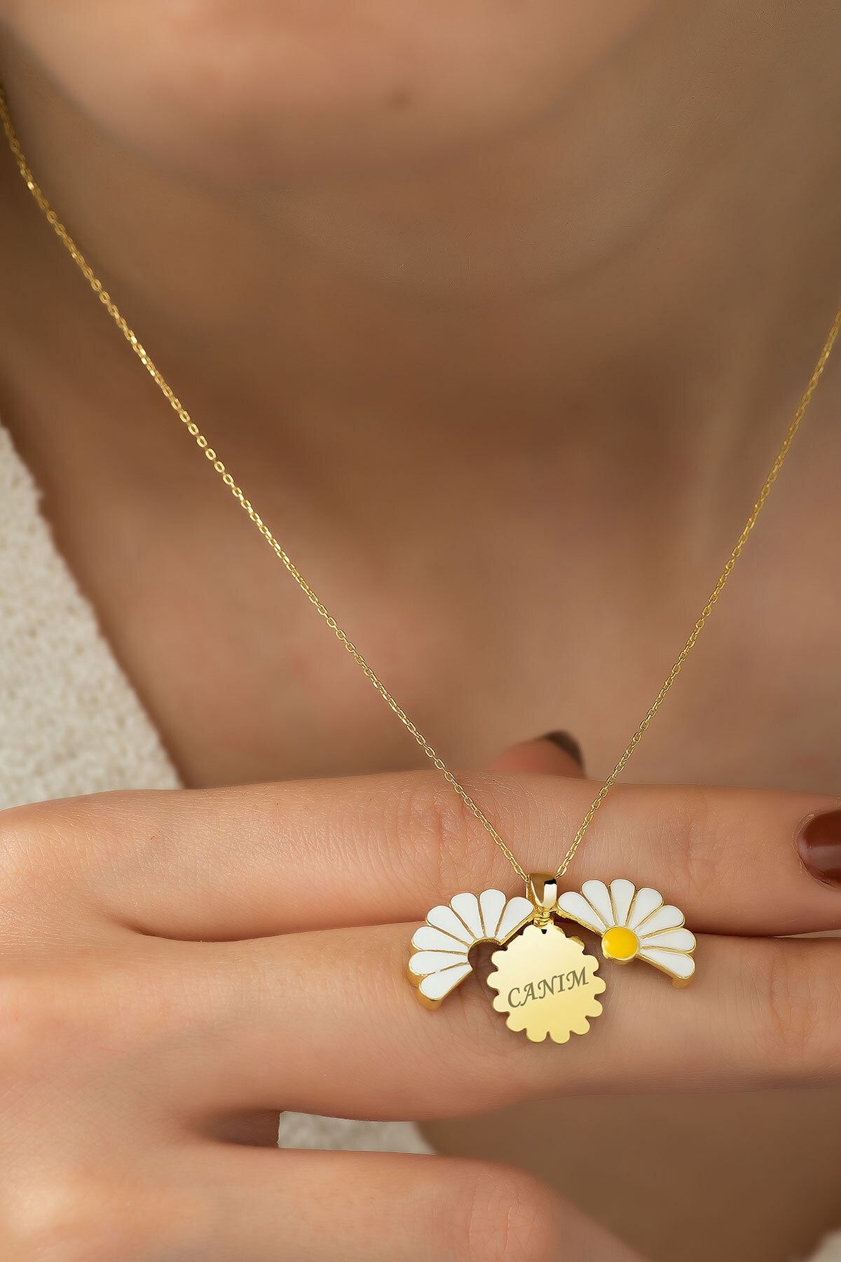 925 Ayar GümüşAçılır Kapanır Papatya Kolye Parfüm HediyeliMaden : 925 Ayar Gümüş.Kaplama: Altın.Renk: Altın.Taş: Mine.Zincir Uzunluğu : 42 cm.Kolye üzerinde Canım yazılı olarak gönderilmektedir.Teslimat :Ürün hediye kutusunda parfüm ilegönderilecektir.