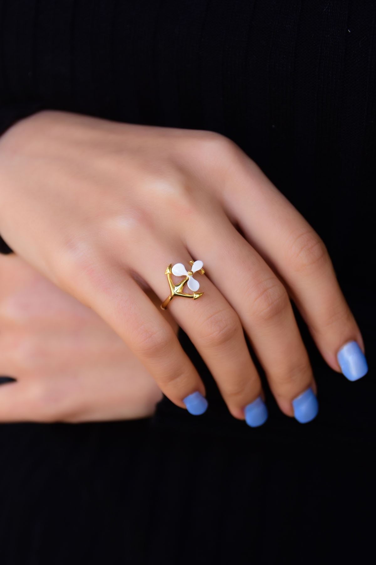 925 Ayar Özel Tasarım Altın Kaplama Nano Mineli Gümüş Papatya Set