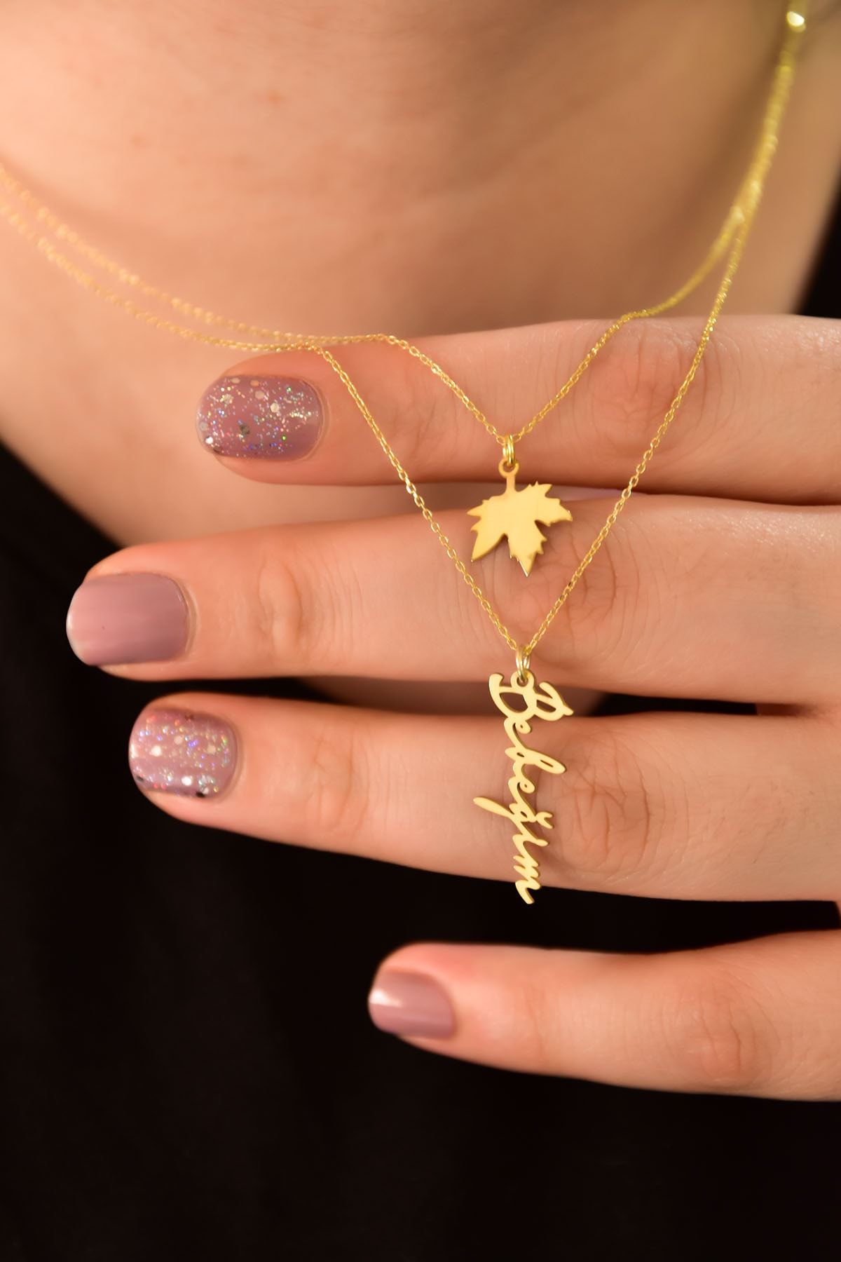 Etiketler925 Ayar Gümüş Altın Kaplama Çınar Yaprağı Ve Bitanem Yazılı Asansörlü Kolye