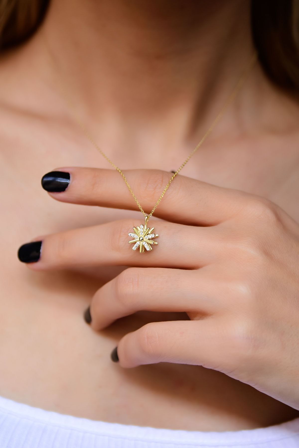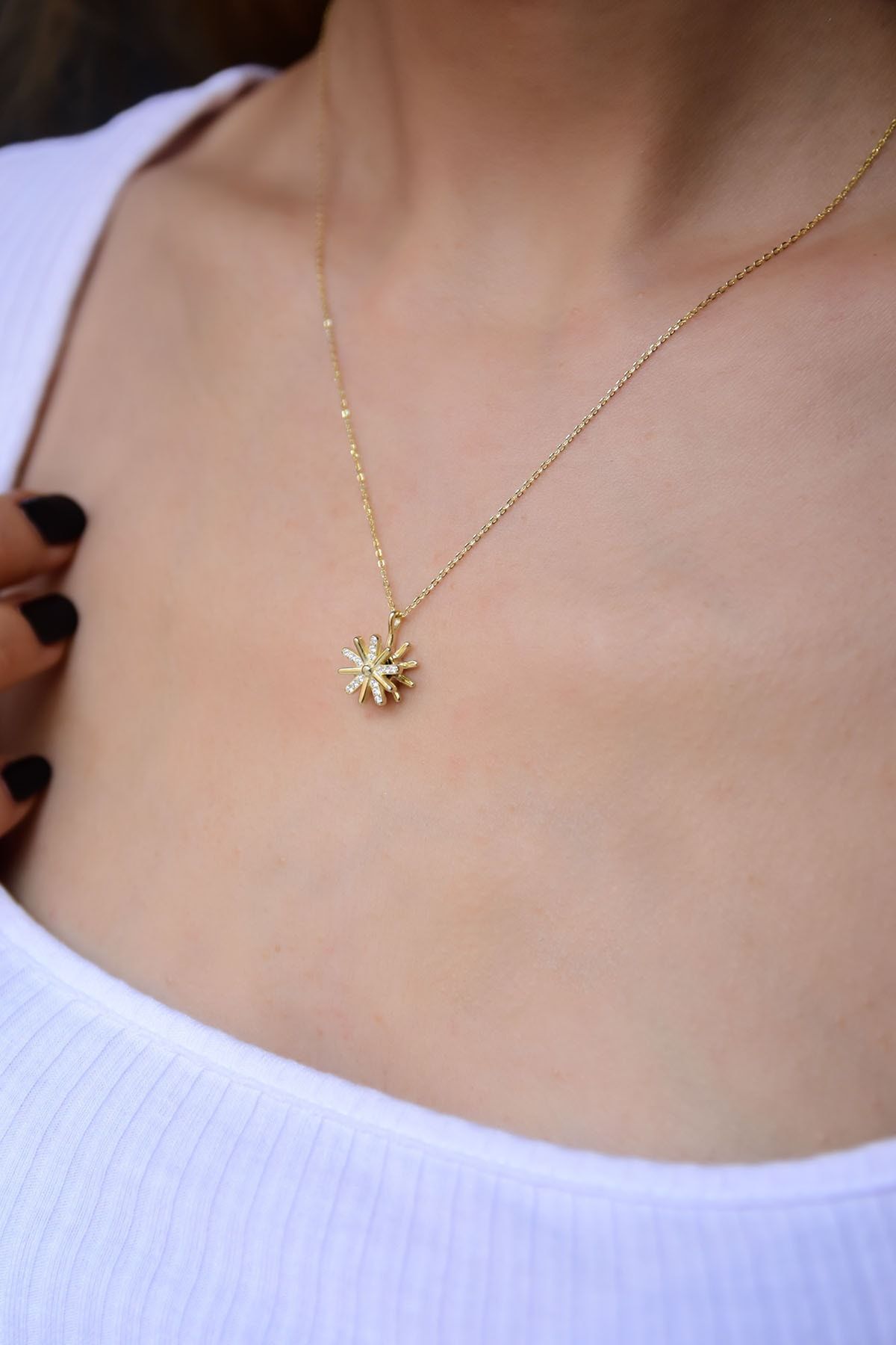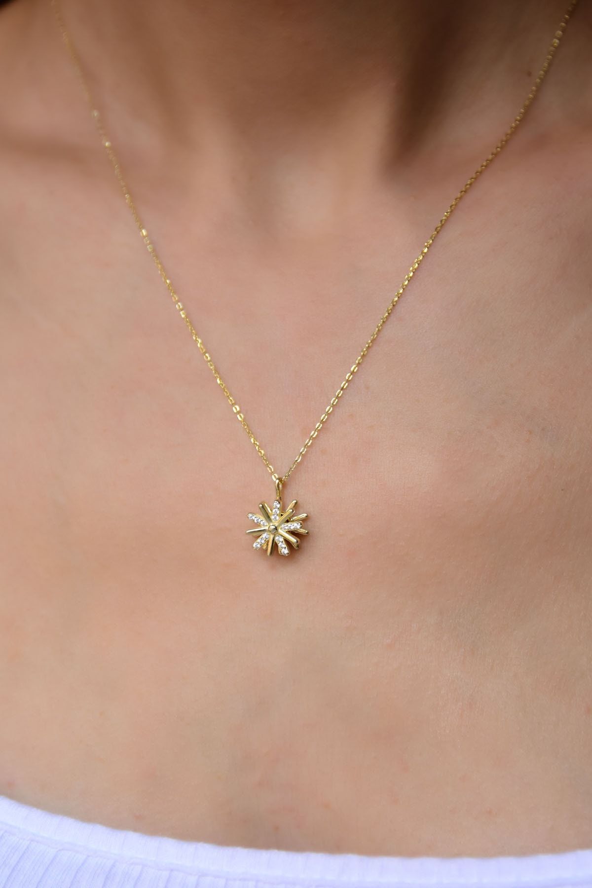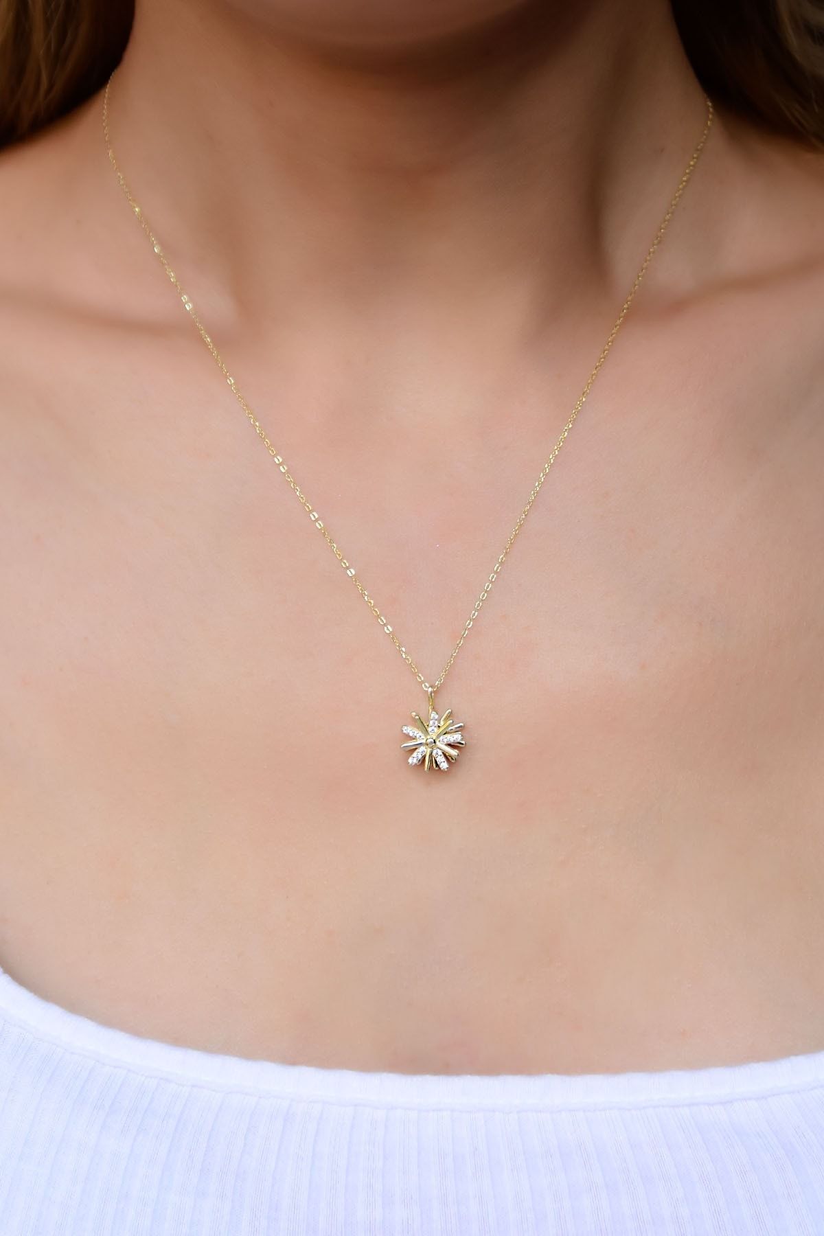 Maden : 925 Ayar Gümüş. Ürün dönmektedir. Kaplama: Altın. Taş: Zirkon. Figür: 1,0 cm. Zincir Uzunluğu: 42 cm. Ürün Ağırlığı : 2,38 Gr ( +-). Gümüş ve değerli taşlar nedeniyle belirtilen ortalama ürün ağırlığında ± %5 sapma olabilmektedir. Teslimat: Ürün ahşap hediye kutusunda gönderilecektir. Kullanım: Parfüm,dezenfektan,çamaşır suyu gibi kimyasallardan uzak tutunuz.