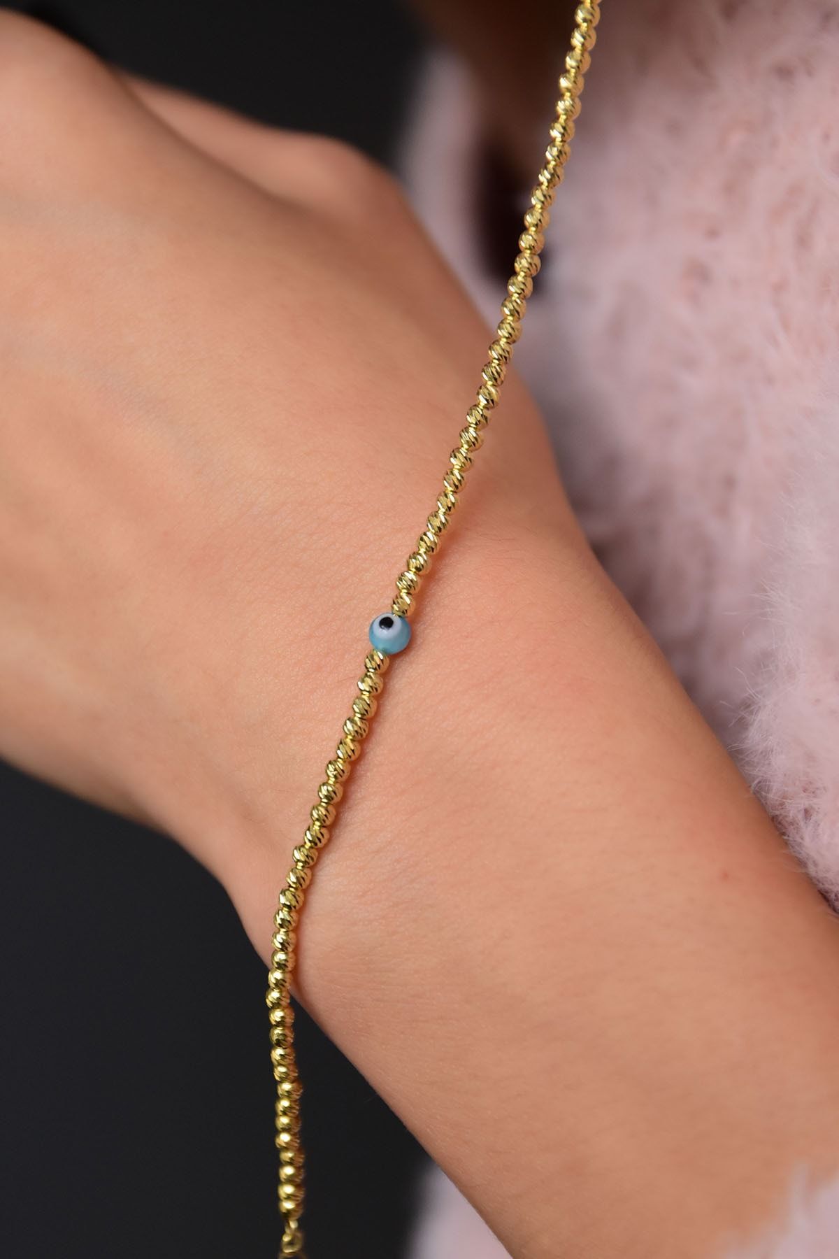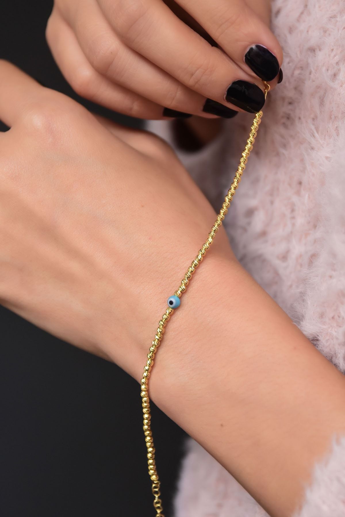 925 Ayar Gümüş Altın Kaplama Dorika Toplu Nazar Göz Bileklik
