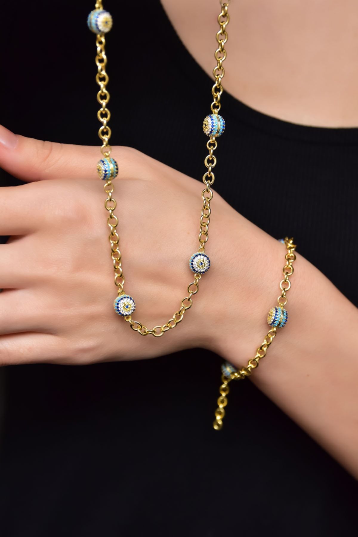 | Etiketler | 925 Ayar Gümüş Altın Kaplama Firuze Nazar Göz Kolye Ve Bileklik Set |