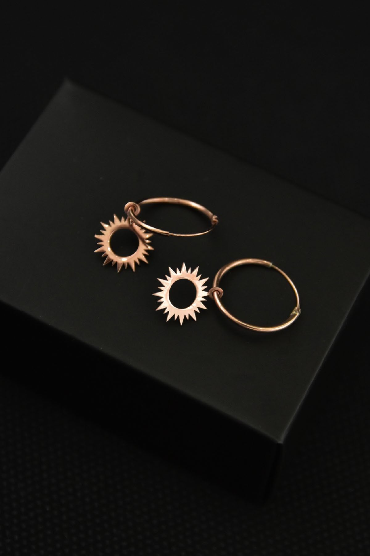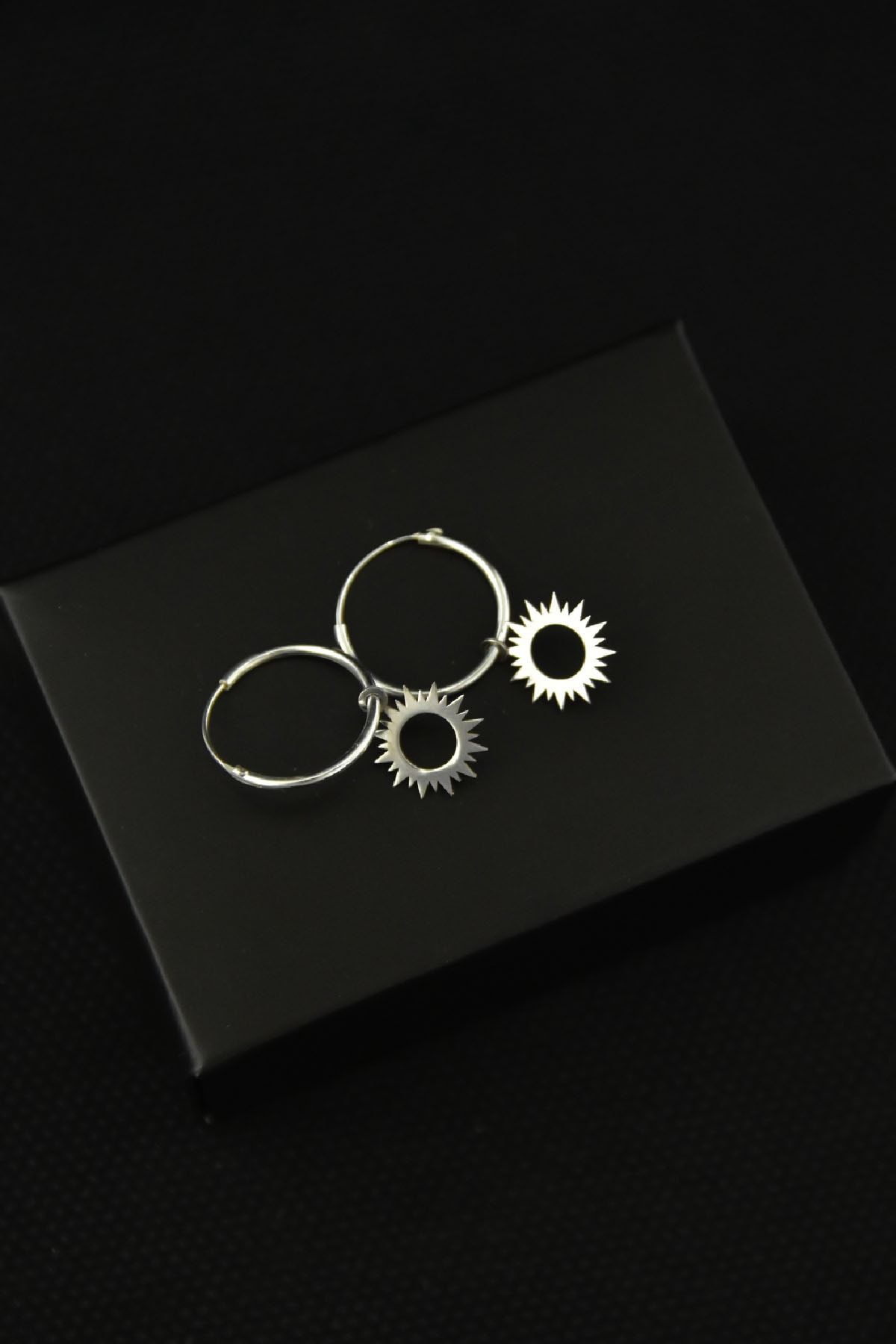 Etiketler925 Ayar Gümüş Altın Kaplama Güneş Figürlü Halka Küpe