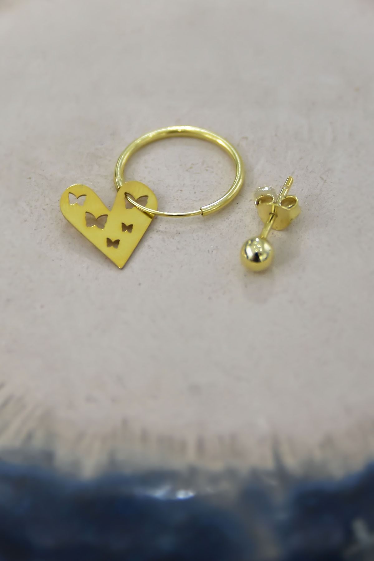 Maden : 925 Ayar Gümüş.Kaplama: Altın. .Figür En x Boy: 1,2 x 1,3 cm.Halka Çap : 1,5 cm.1 Adet halka , 1 adet top küpe gönderilmektedir.Ürün Ağırlığı : 0,83 Gr ( +-). Gümüş ve değerli taşlar nedeniyle belirtilen ortalama ürün ağırlığında ± %5 sapma olabilmektedir.Teslimat: Ürün ahşap hediye kutusunda gönderilecektir.Kullanım: Parfüm,dezenfektan,çamaşır suyu gibi kimyasallardan uzak tutunuz.