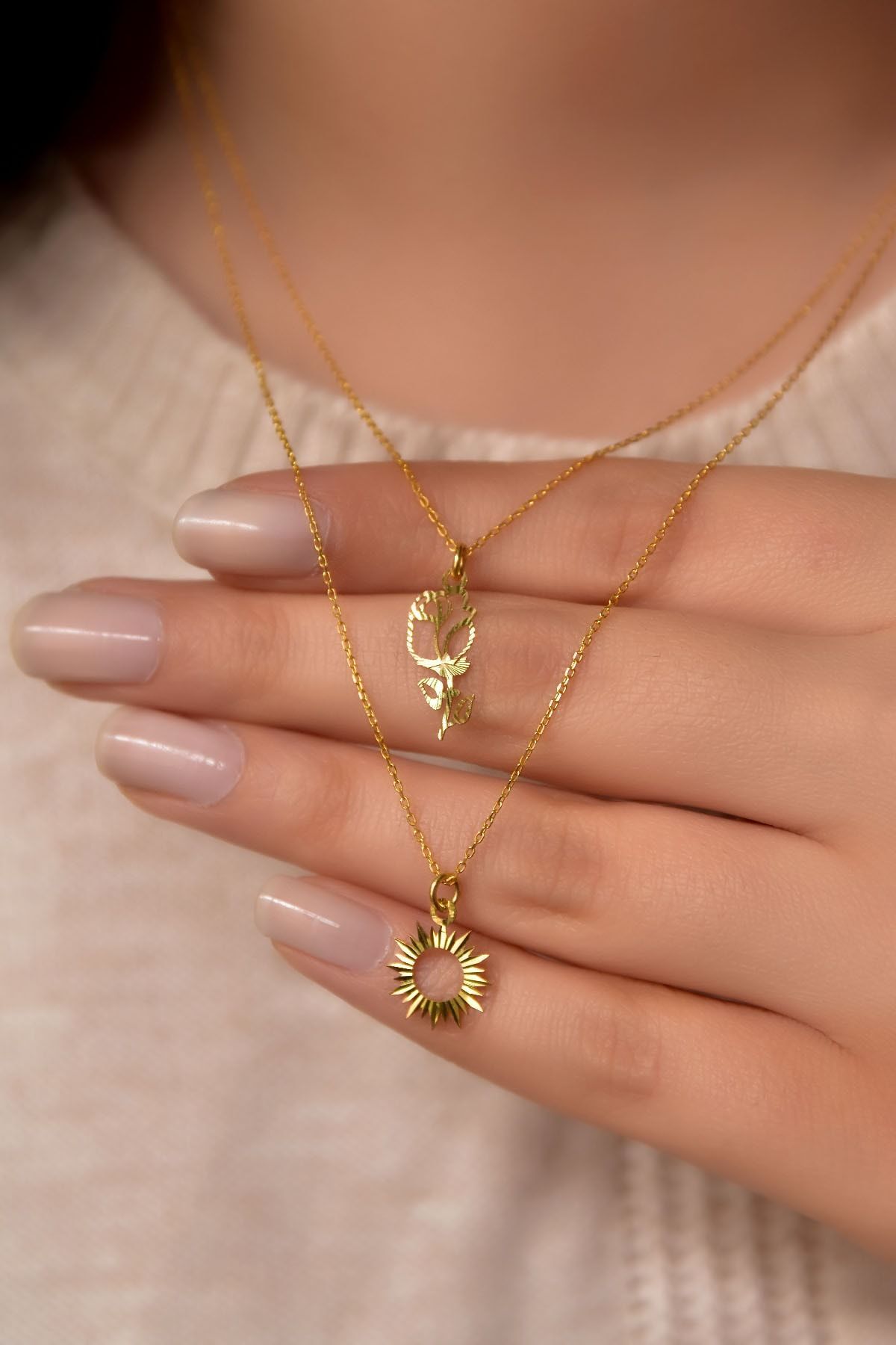Etiketler925 Ayar Gümüş Altın Kaplama Kristal Kesim Gül Ve Güneş Asansörlü Kolye
