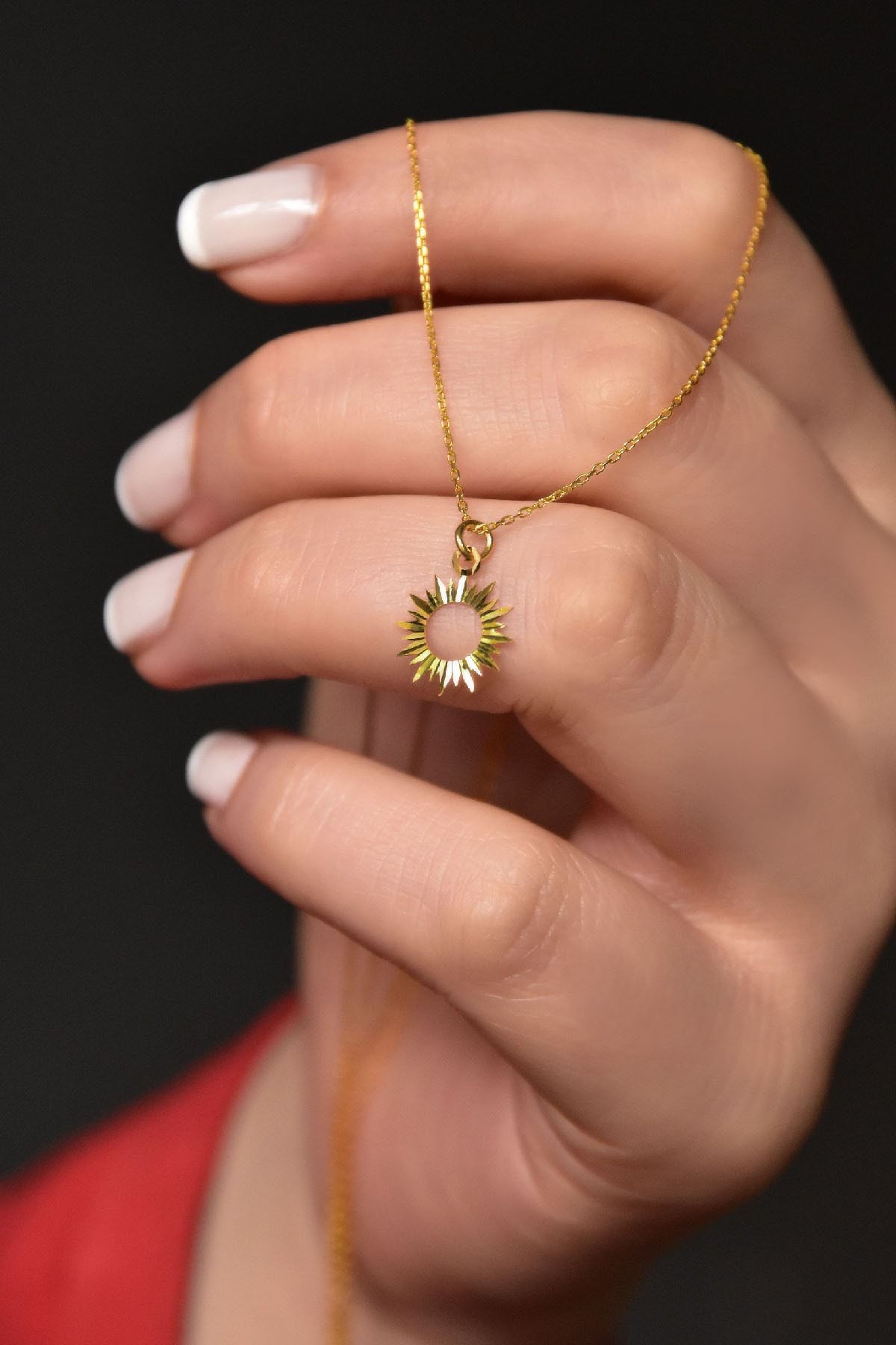 Maden : 925 Ayar Gümüş.Kaplama: Altın.Ürün Ebat En x Boy: 1,0 x 1,0 cm.Zincir Uzunluğu: 42 cm.Ürün Ağırlığı : 1,05 Gr ( +-). Gümüş ve değerli taşlar nedeniyle belirtilen ortalama ürün ağırlığında ± %5 sapma olabilmektedir.Teslimat: Ürün ahşap hediye kutusunda gönderilecektir.Kullanım: Parfüm,dezenfektan,çamaşır suyu gibi kimyasallardan uzak tutunuz.