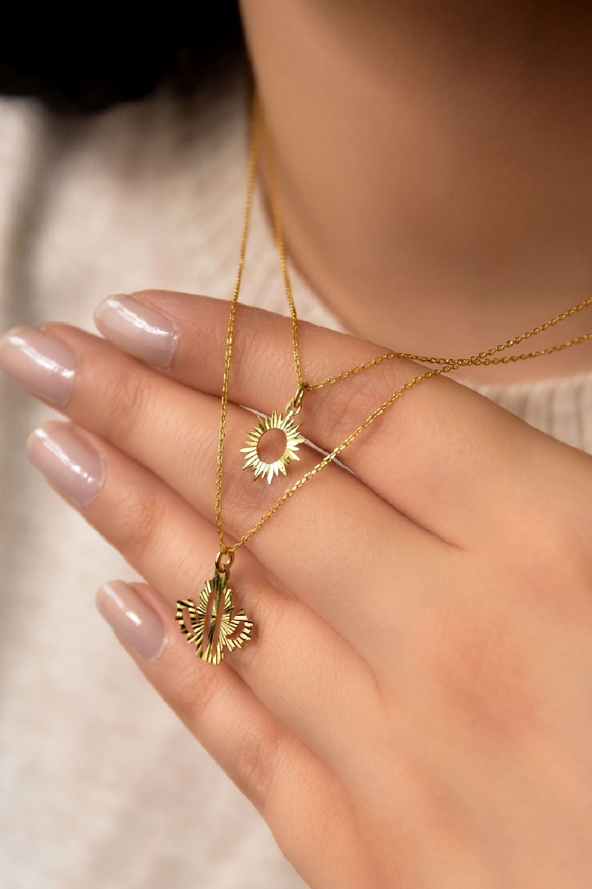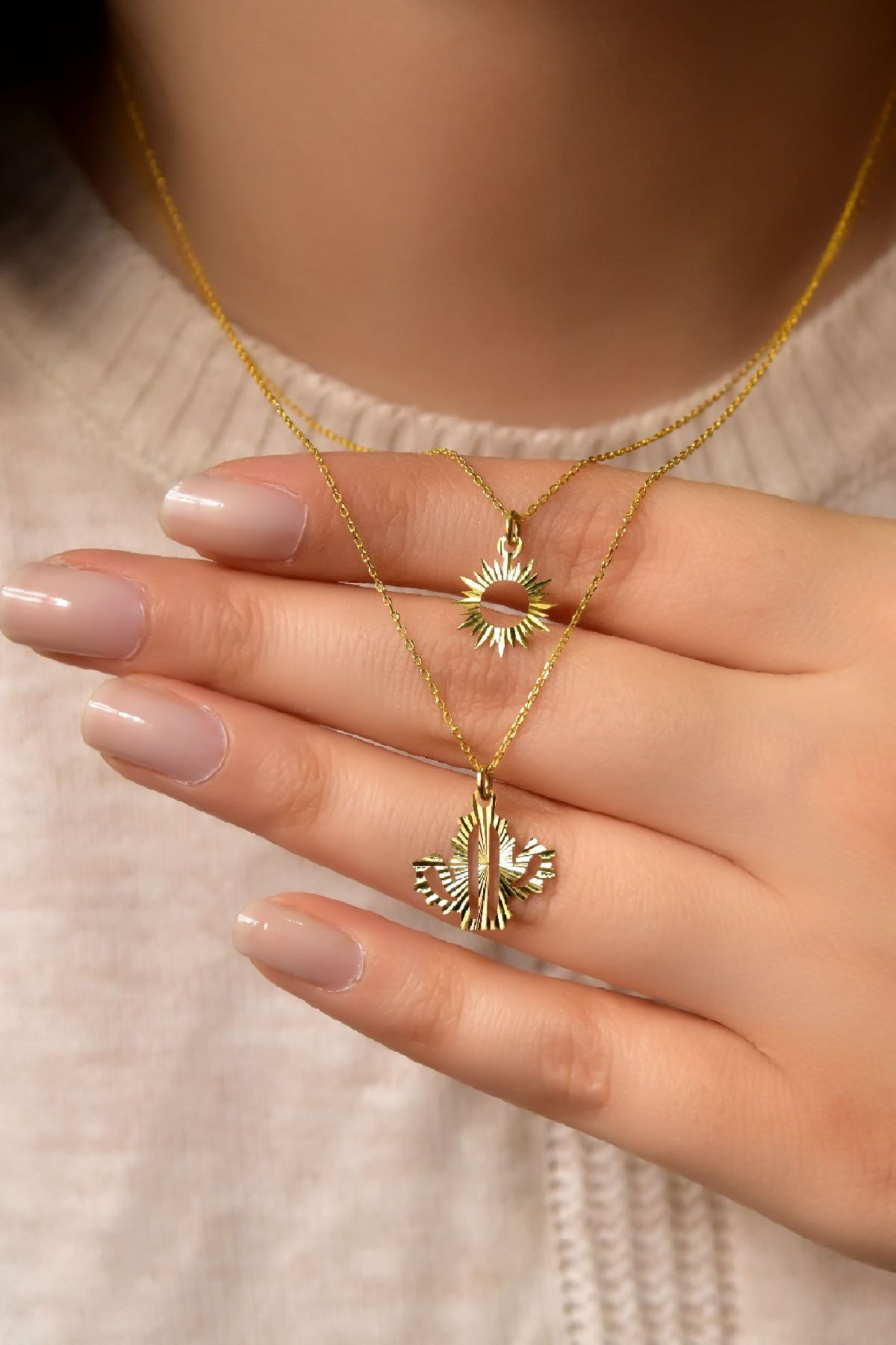 Etiketler925 Ayar Gümüş Altın Kaplama Kristal Kesim Güneş Ve Kaktüs Asansörlü Kolye