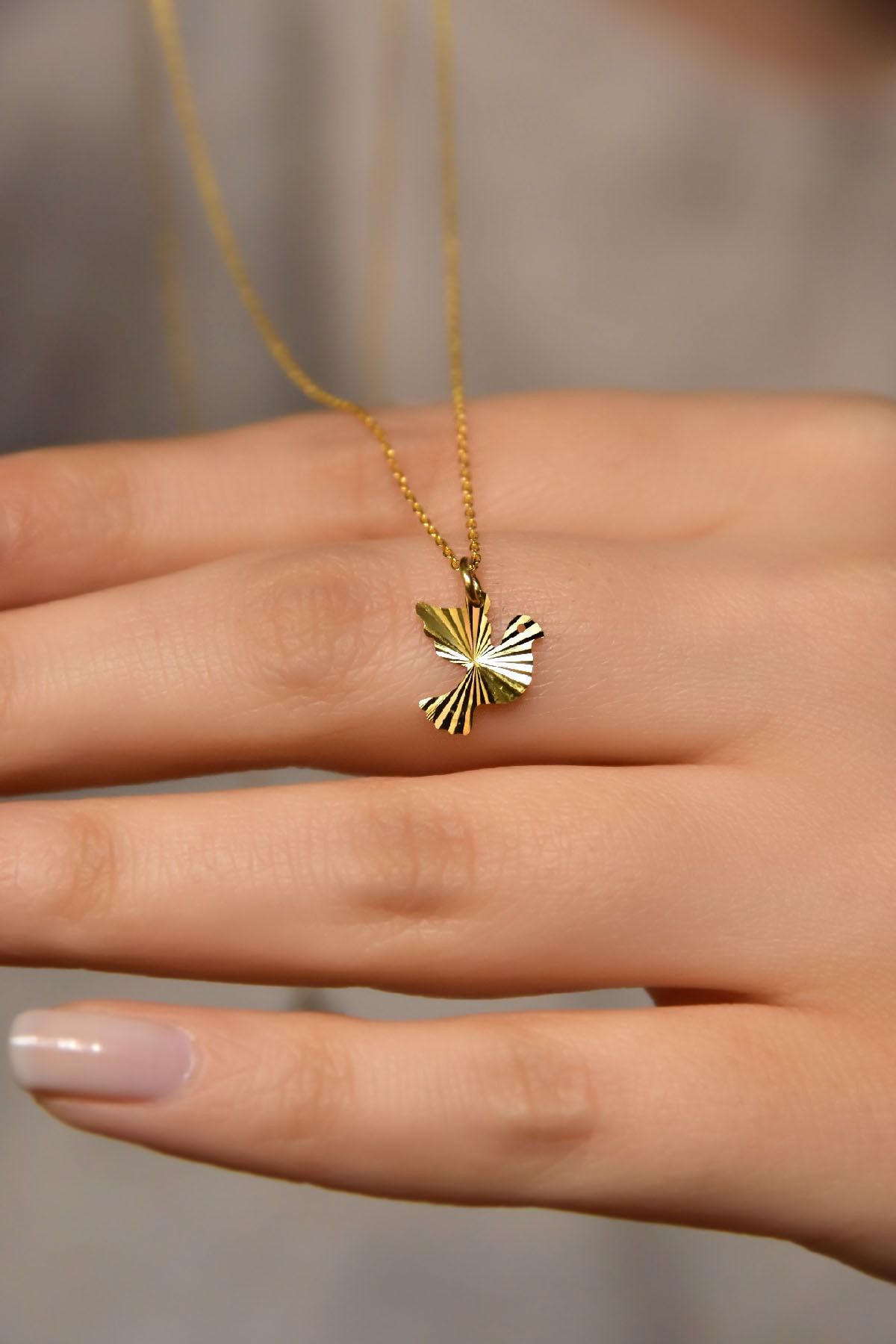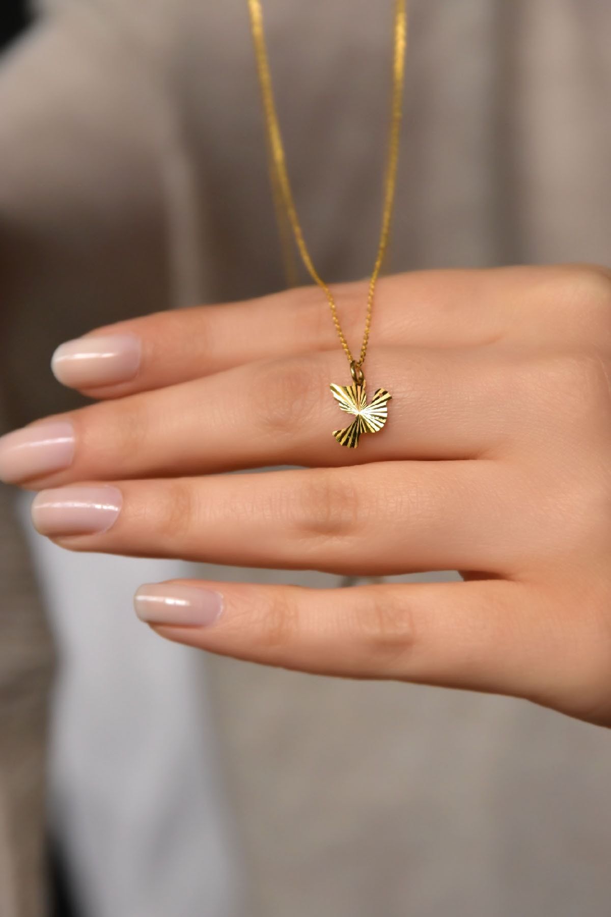925 Ayar Gümüş Altın Kaplama Kristal Kesim Kuş Kadın Kolye
