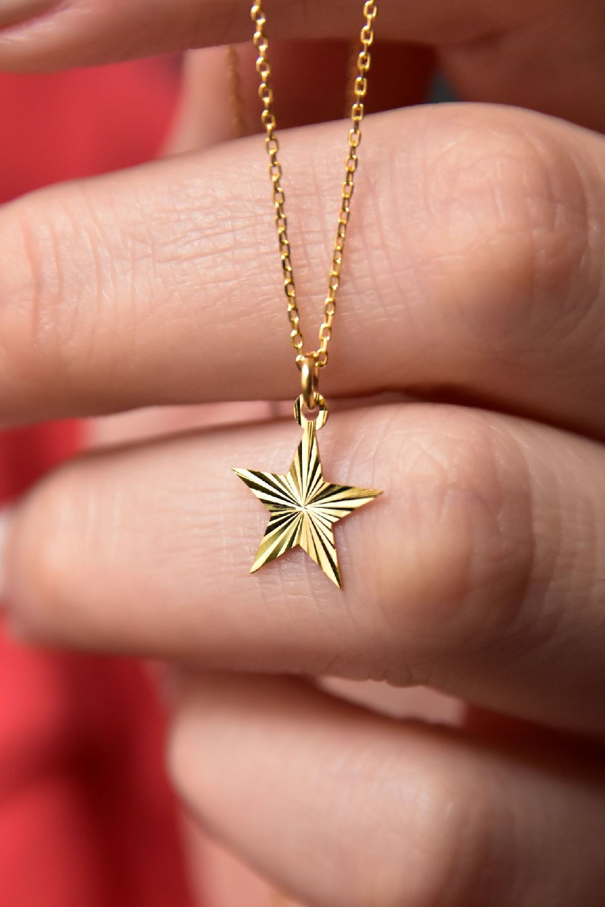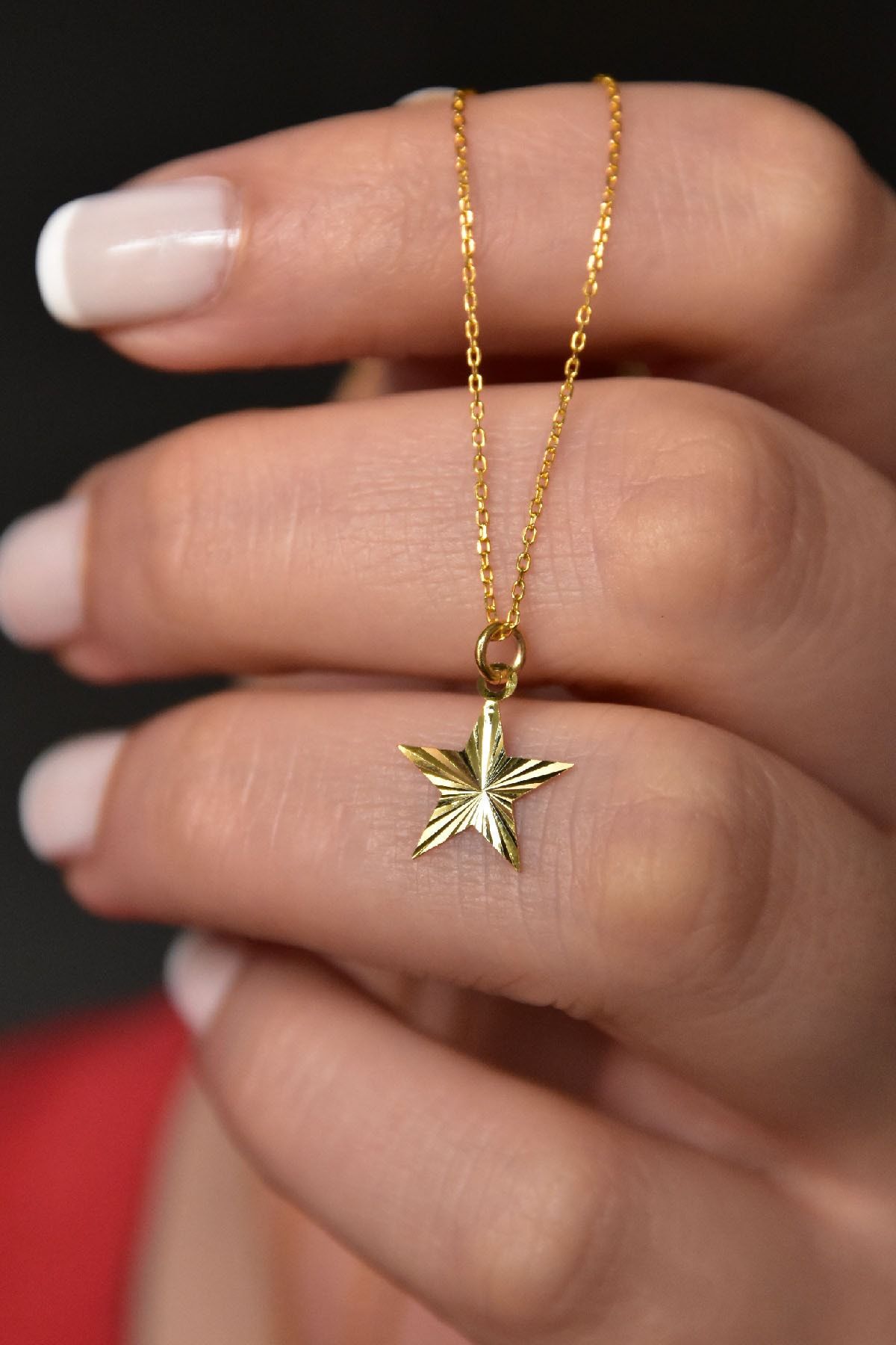 Etiketler925 Ayar Gümüş Altın Kaplama Kristal Kesim Yıldız Kadın Kolye
