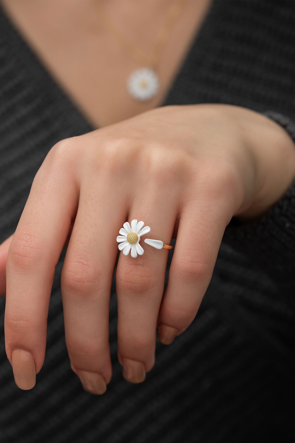 925 Ayar Gümüş Altın Kaplama Nano Mineli Papatya Set