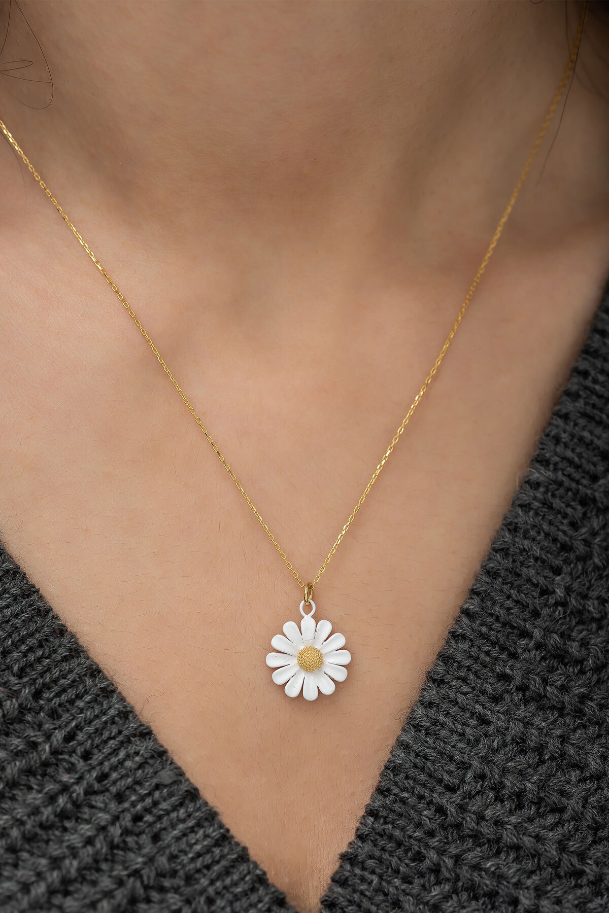 Etiketler925 Ayar Gümüş Altın Kaplama Nano Mineli Papatya Set