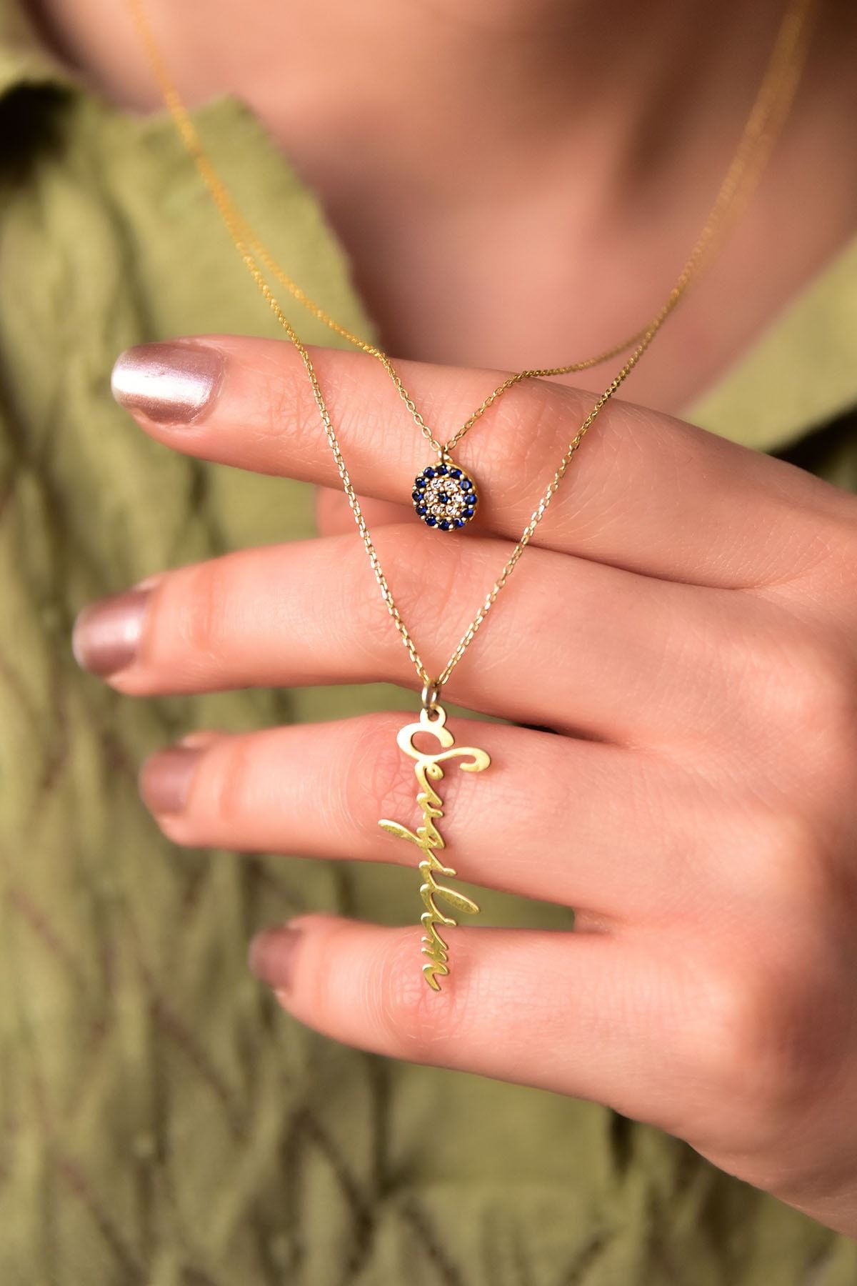 Lütfen Farkı Bir İsim Yazılmasını İstiyorsanız İstenilen İsmi Satın Aldıktan Sonra Satıcıya Soru Sor Kısmından Bildiriniz.Maden : 925 Ayar Gümüş.Kaplama: Altın.Ürün Ağırlığı : 2,80 Gr ( +-). Gümüş ve değerli taşlar nedeniyle belirtilen ortalama ürün ağırlığında ± %5 sapma olabilmektedir.Zincir Uzunluğu: 45 cm. Teslimat: Ürün ahşap hediye kutusunda gönderilecektir.Kullanım: Parfüm,dezenfektan,çamaşır suyu gibi kimyasallardan uzak tutunuz.