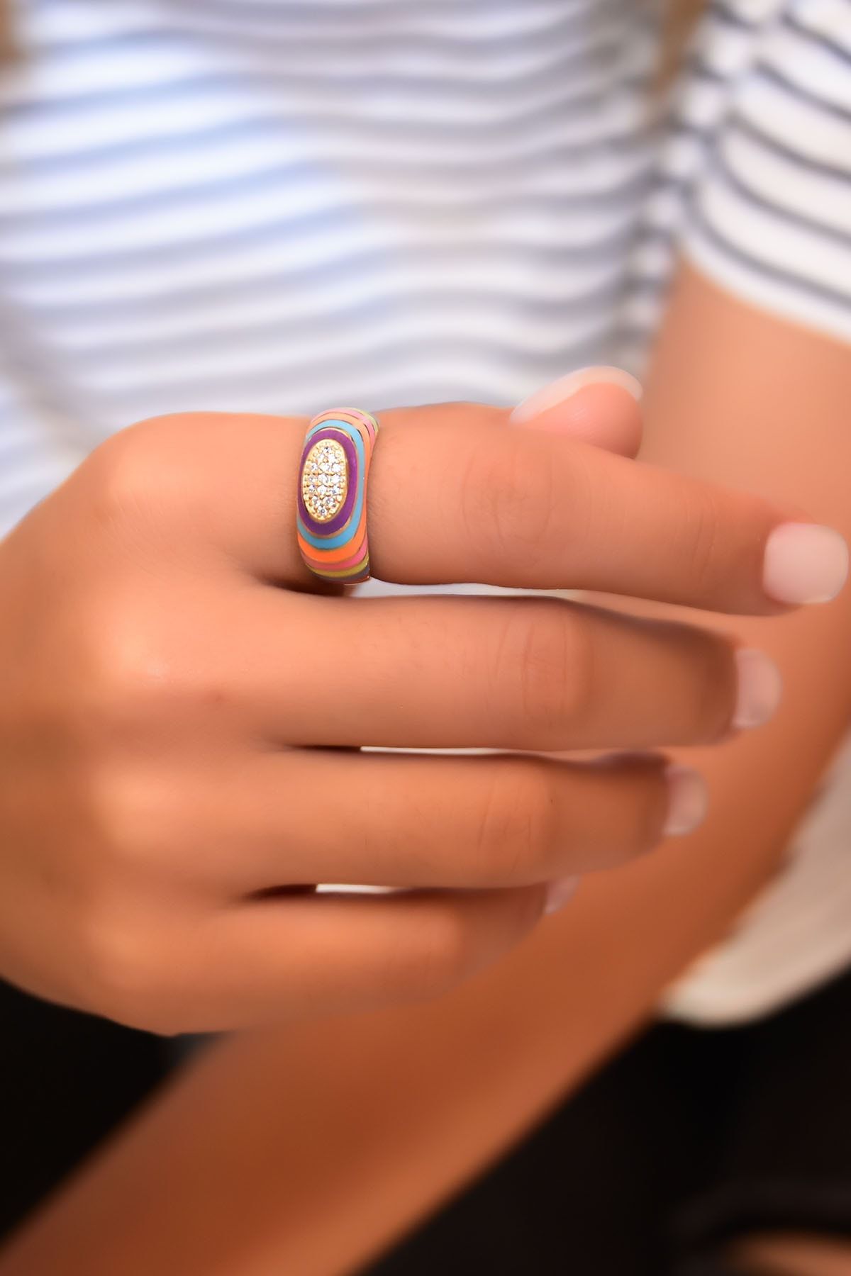 Maden : 925 ayar gümüş. Kaplama: Altın. . Taş: Zirkon,mine. Yüzük ölçüsü: Ayarlanabilir. Ürün ağırlığı : 4,15 gr ( +-). Gümüş değerli taşlar nedeniyle belirtilen ortalama ürün ağırlığında ± %5 sapma olabilmektedir. Teslimat : Ürün kutusunda ve hediye paketinde gönderilecektir. Kullanım: Parfüm,dezenfektan,çamaşır suyu gibi kimyasallardan uzak tutunuz.