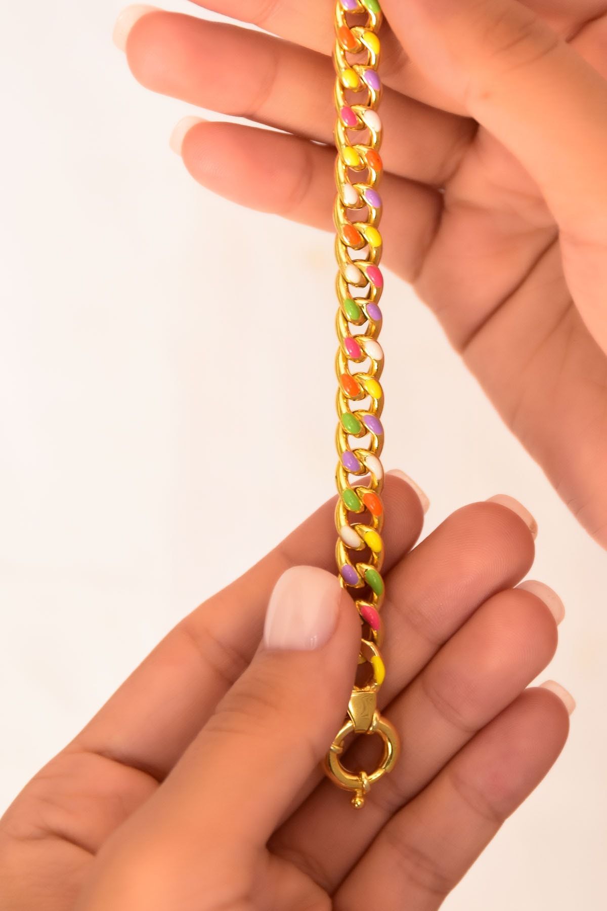 Etiketler925 Ayar Gümüş Altın Kaplama Renkli Mineli Gurmet Zincir Kadın Bileklik