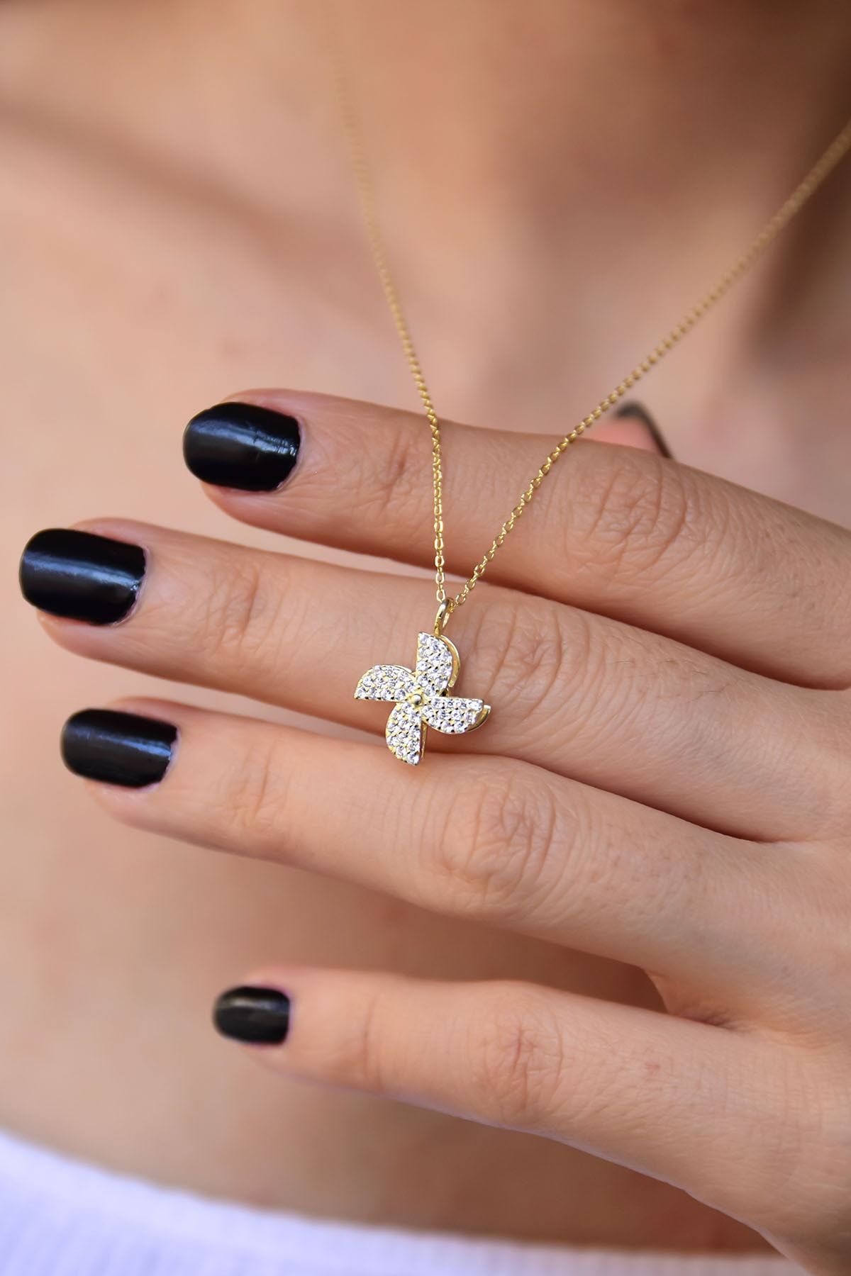 925 Ayar Gümüş Altın Kaplama Rüzgar Gülü Kolye