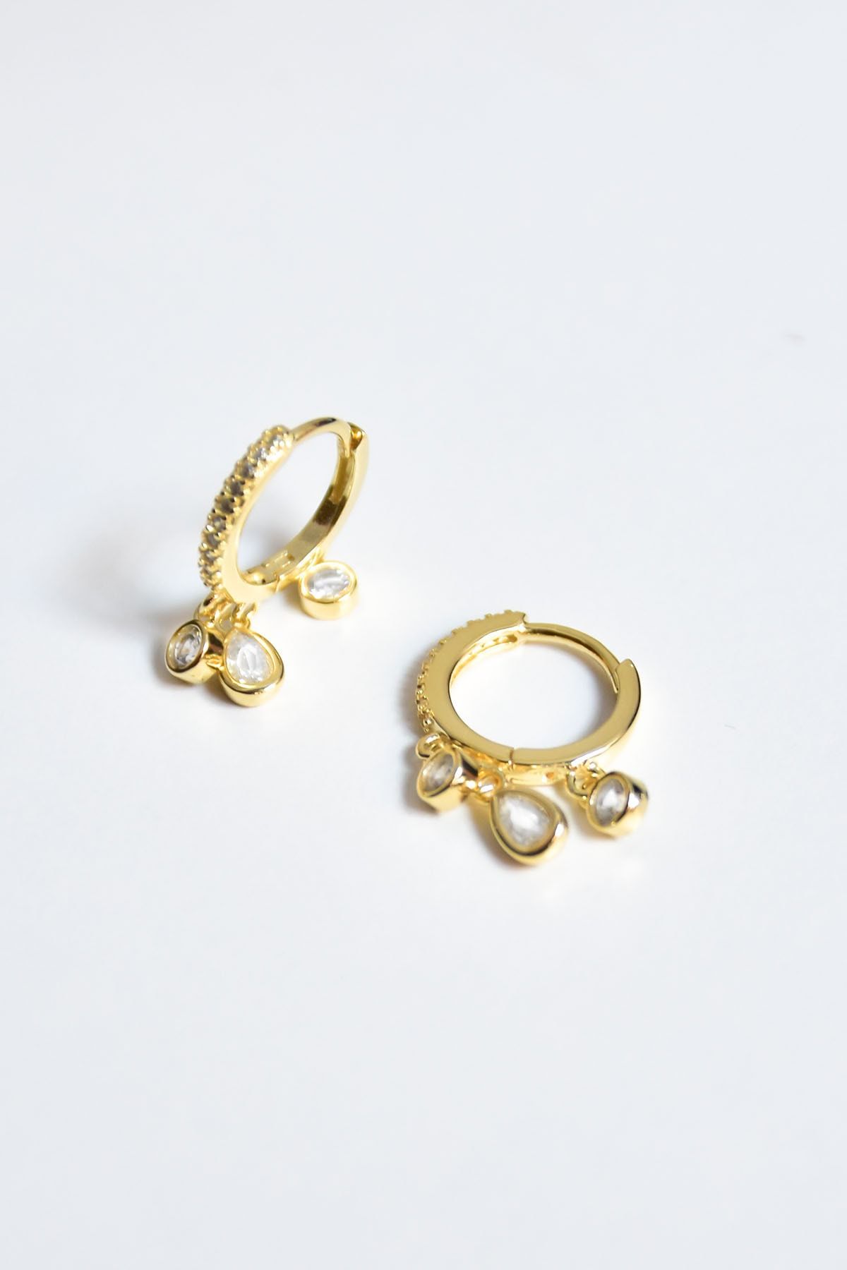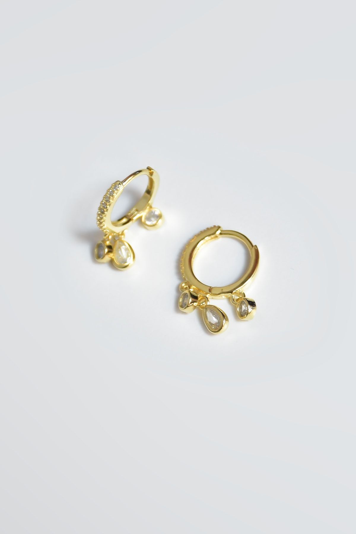 925 Ayar Gümüş Altın Kaplama Sallantılı Damla Taşlı Halka Küpe