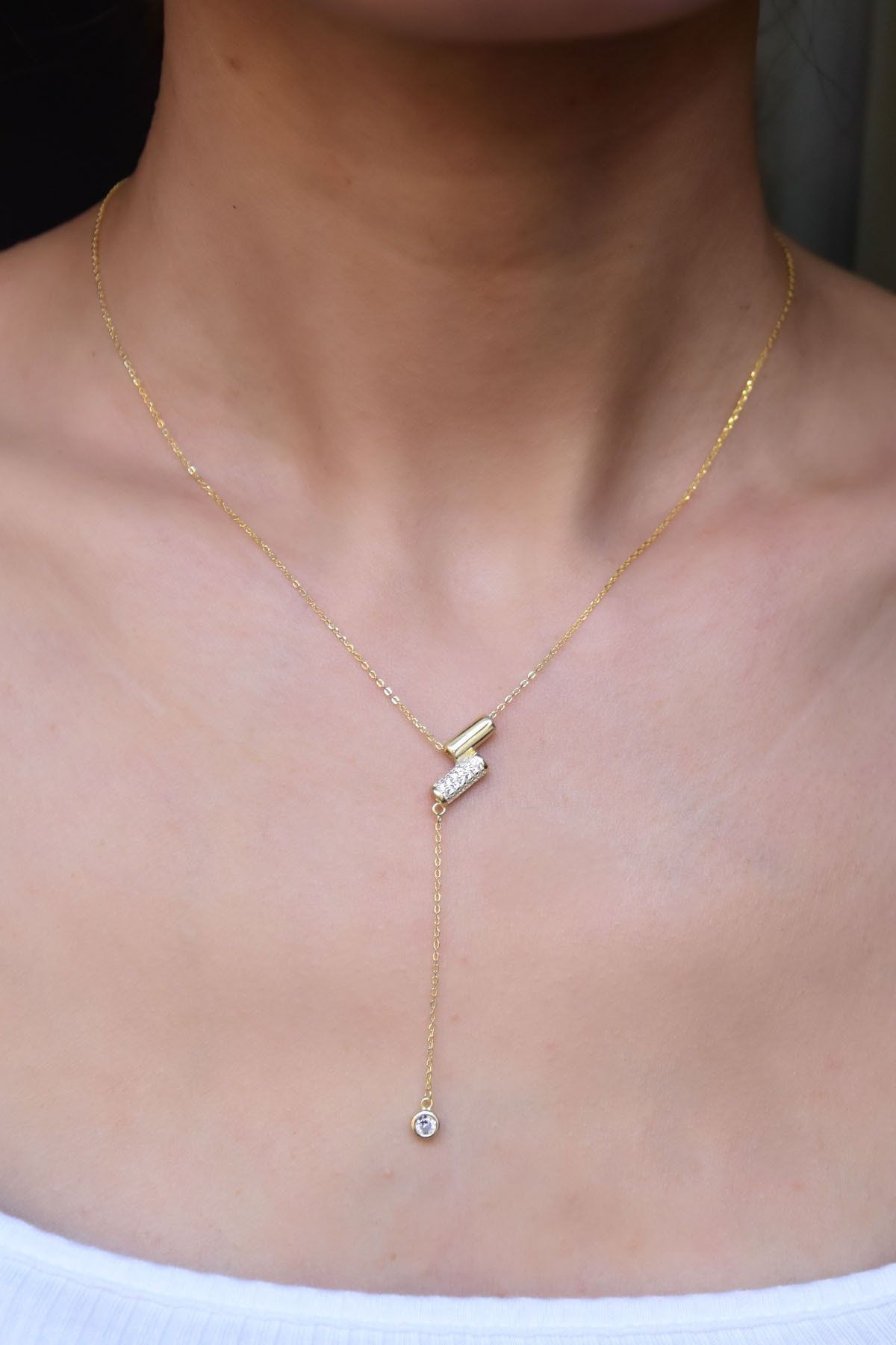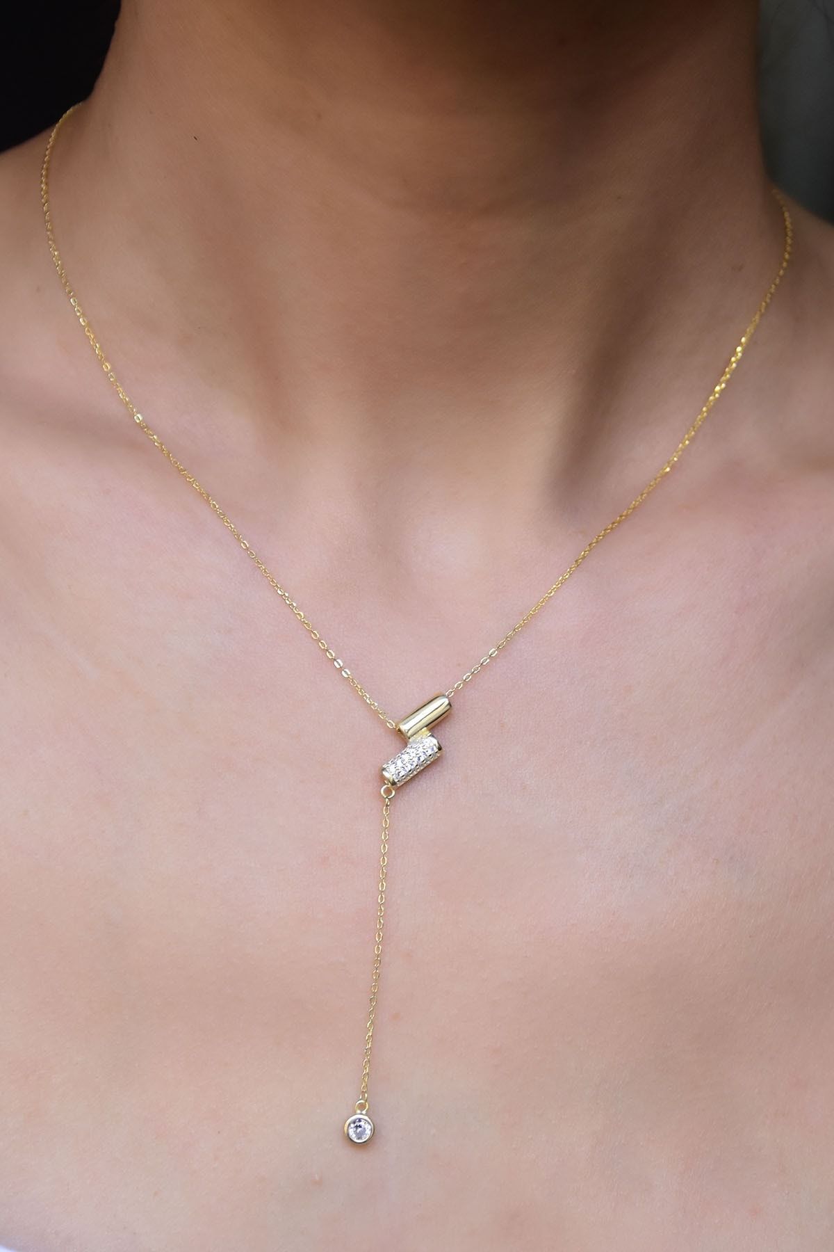 Maden : 925 Ayar Gümüş. Kaplama: Altın. Taş: Zirkon. Zincir Uzunluğu: 42 cm. En x Boy: 1,5 x 0,8 cm. Ürün Ağırlığı : 2,38 Gr ( +-). Gümüş ve değerli taşlar nedeniyle belirtilen ortalama ürün ağırlığında ± %5 sapma olabilmektedir. Teslimat: Ürün ahşap hediye kutusunda gönderilecektir. Kullanım: Parfüm,dezenfektan,çamaşır suyu gibi kimyasallardan uzak tutunuz.