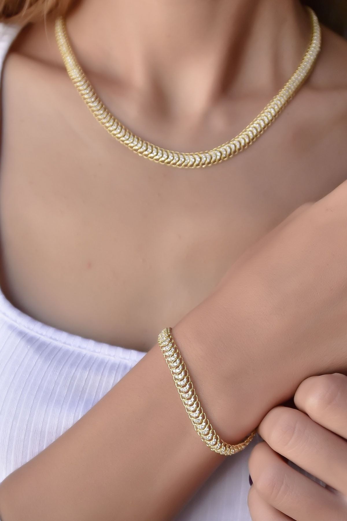 | Etiketler | 925 Ayar Gümüş Altın Kaplama Taşlı Tasarım Kolye Bileklik Set |