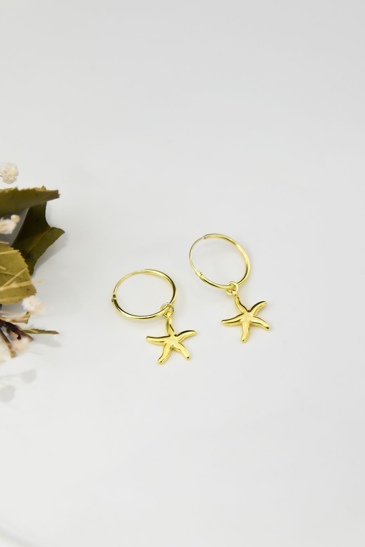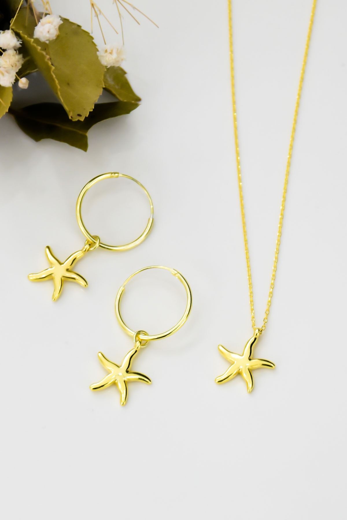Etiketler925 Ayar Gümüş Altın Kaplama Yıldız Kolye Küpe Set