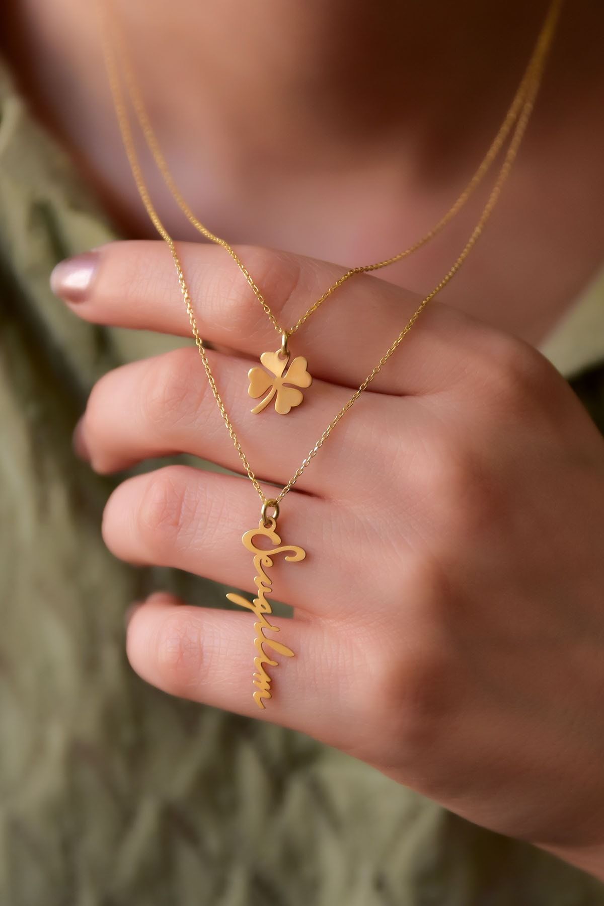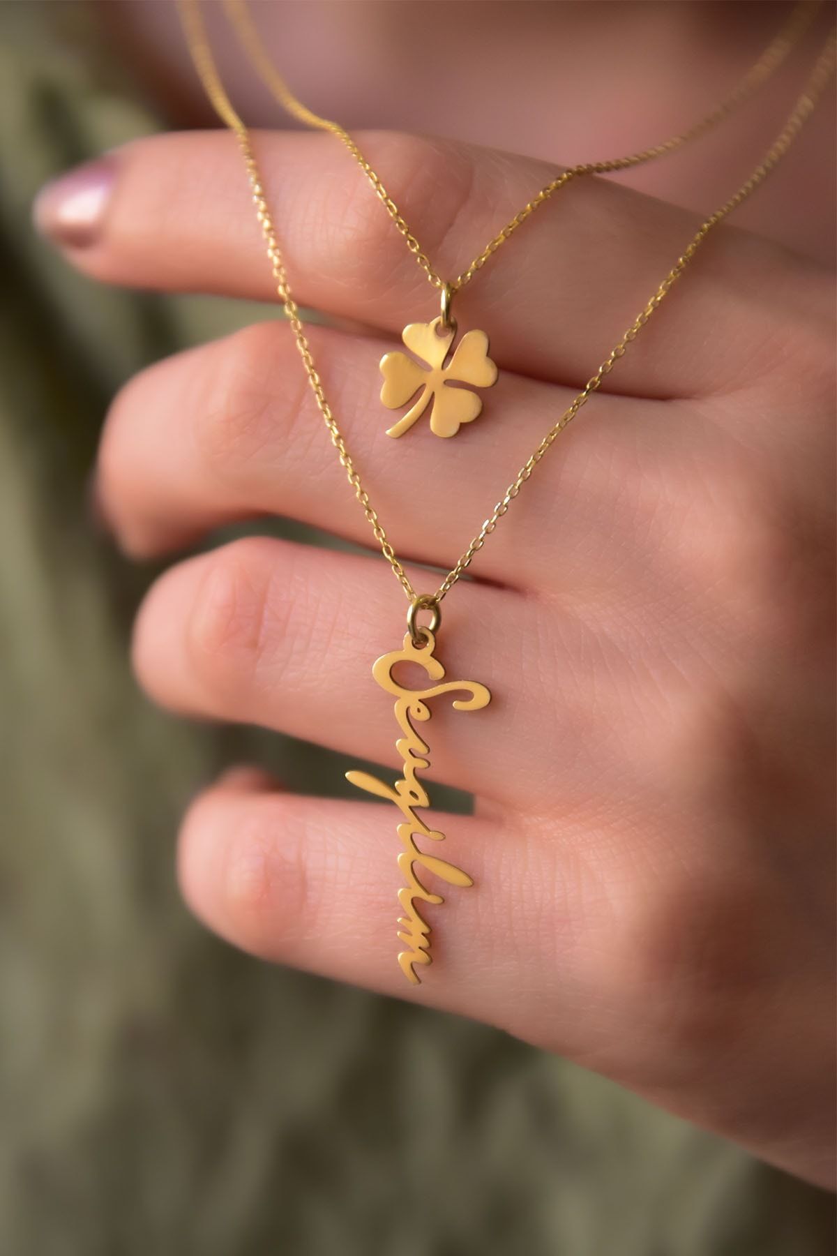 Etiketler925 Ayar Gümüş Altın Kaplama Yonca Ve Sevgilim Yazılı Asansörlü Kolye