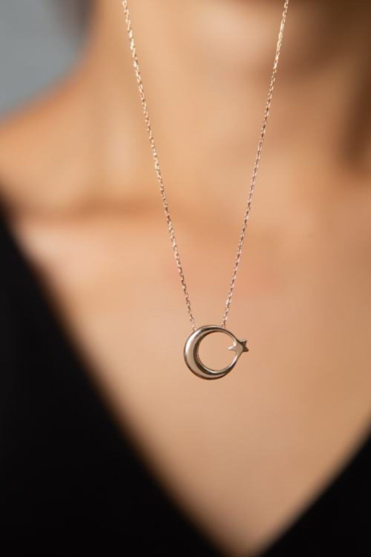 925 Ayar Gümüş Ay Yıldız Kolye.Ayar : 925 Ayar Gümüş.Kaplama: Rose Altın.Taş:Ürün Ağırlığı : 1,80 Gr ( +-). Gümüş ve değerli taşlar nedeniyle belirtilen ortalama ürün ağırlığında ± %5 sapma olabilmektedir.Teslimat: Ürün ahşap hediye kutusunda gönderilecektir.