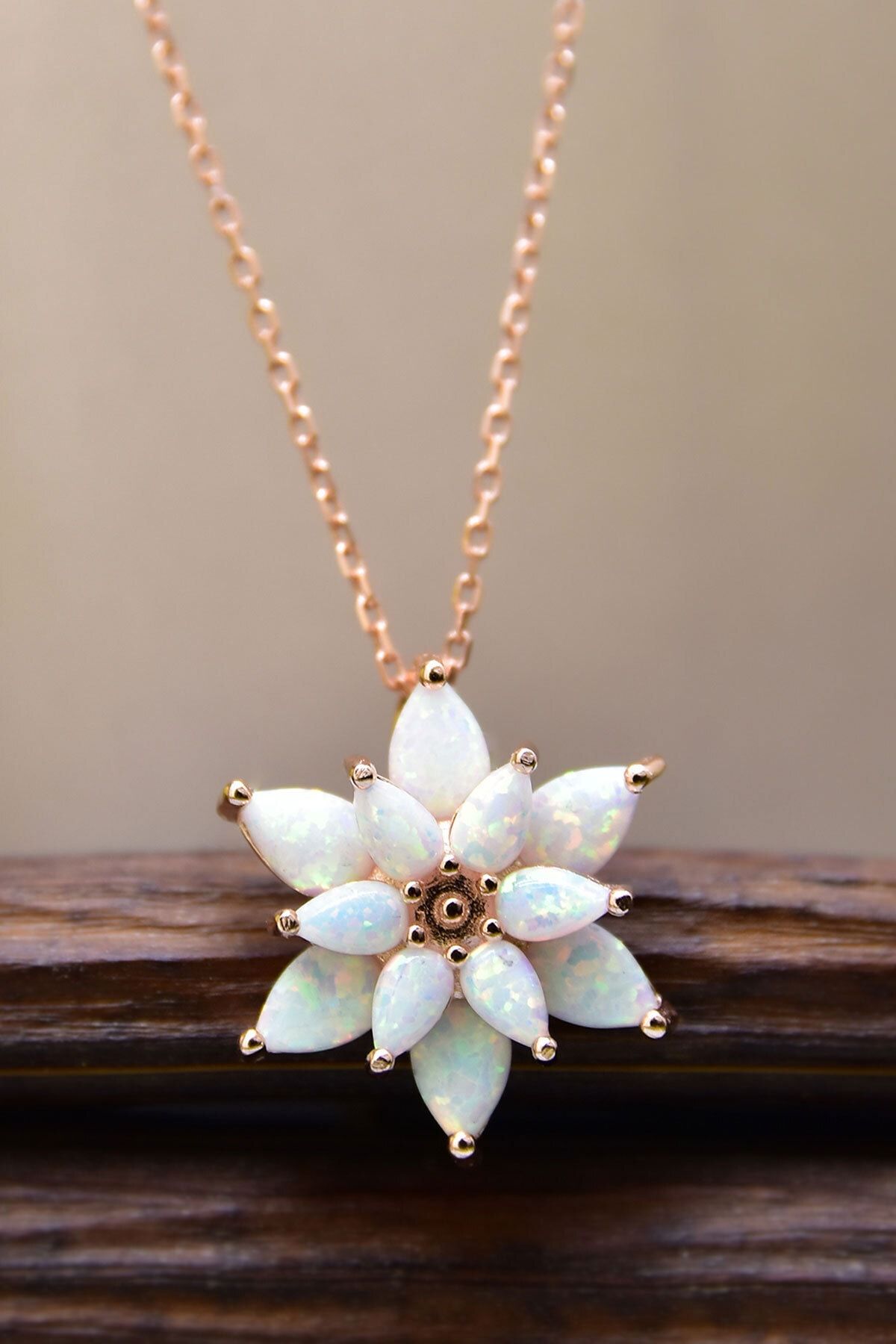 Maden Ayar: 925 Ayar Gümüş.Maden Kaplama: Rose Altın.Ürün Ağırlığı: 2,15 Gr. ( +-).Zincir Uzunluk: 42 cm.En Boy: 1,5 x 1,5 cm.Taş: Opal.Teslimat: Ürün ahşap hediye kutusunda gönderilecektir.''Gümüş ürünlerin yapısı gereği kararmalar meydana gelebilir daha uzun ömürlü olması için;Parfüm gibi kozmetik ürünlere direkt temas etmediği sürece ürün ömrü daha uzun olacaktır.''