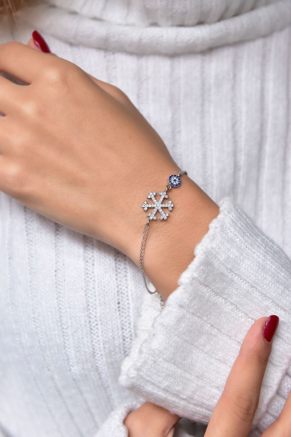 925 Ayar Gümüş Çift Zincirli Nazarlı Kartanesi Bileklik