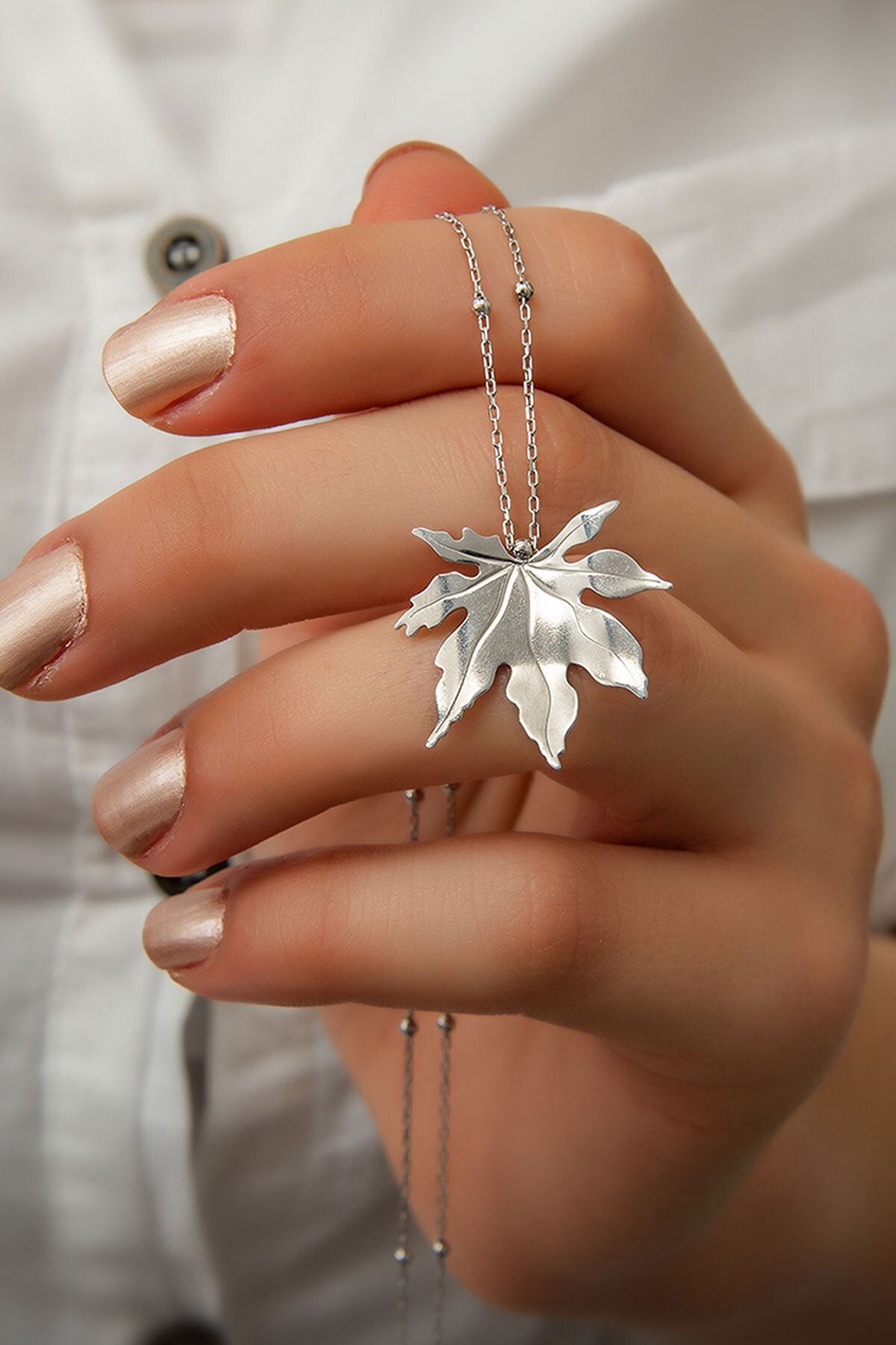 925 Ayar Gümüş Çınar Yaprağı Kolye Maden : 925 Ayar Gümüş Kaplama: Gümüş Renk : Gümüş Taş: Taşsız Zincir uzunluğu : 43 cm. Ürün ağırlığı : 2,50. Gr (+-). Teslimat : Papatya Silver tarafından ürün kutusunda gönderilecektir.