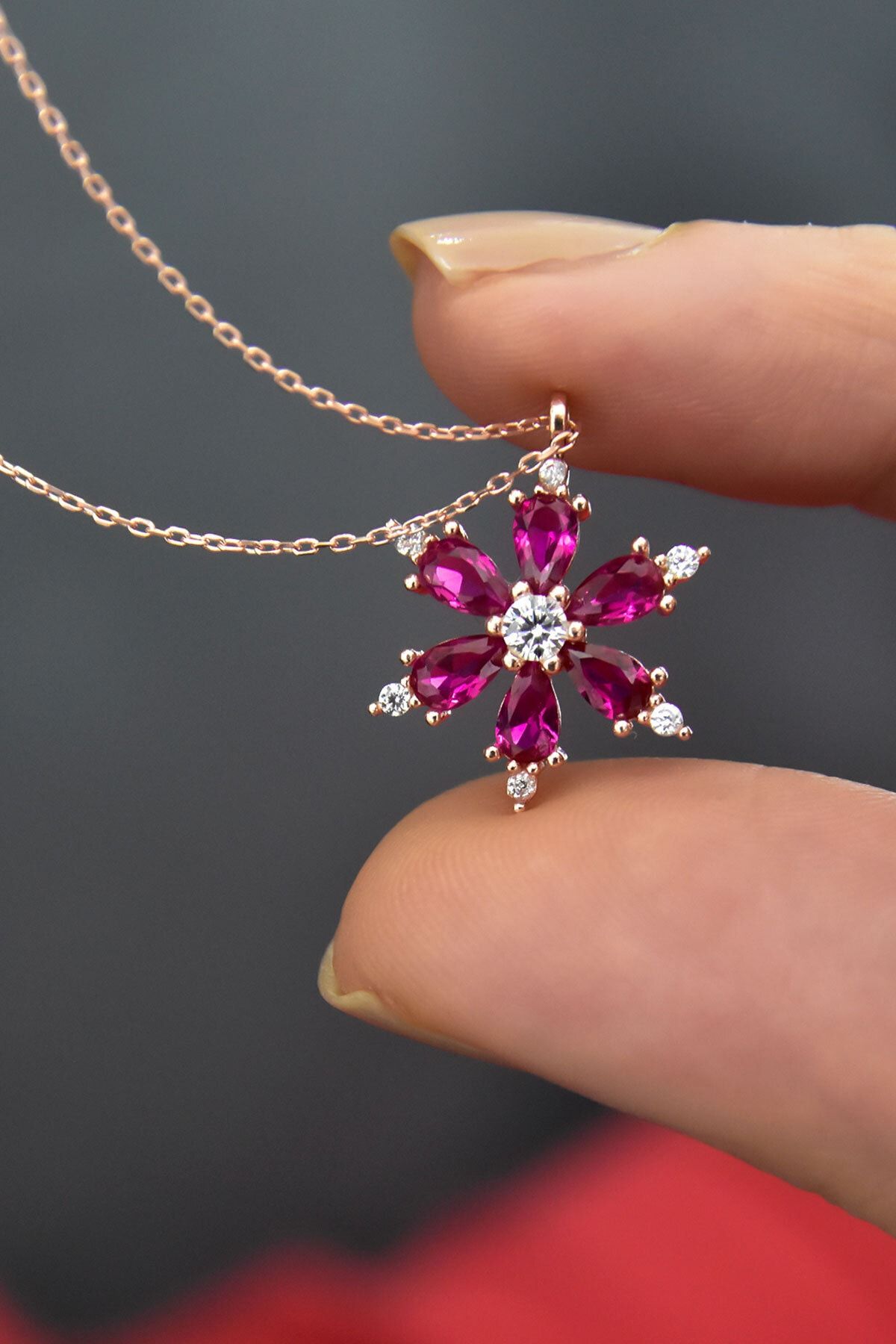 Maden : 925 Ayar Gümüş.Kaplama: Rose Altın. .Renk : Fuşya, Beyaz.Taş: Zirkon.Ürün Ebat En x Boy: 1,5 x 1,5 cm.Zincir Uzunluğu: 42 cm.Ürün Ağırlığı : 2,35 Gr ( +-). Gümüş ve değerli taşlar nedeniyle belirtilen ortalama ürün ağırlığında ± %5 sapma olabilmektedir.Teslimat: Ürün ahşap hediye kutusunda gönderilecektir.Kullanım: Parfüm,dezenfektan,çamaşır suyu gibi kimyasallardan uzak tutunuz.