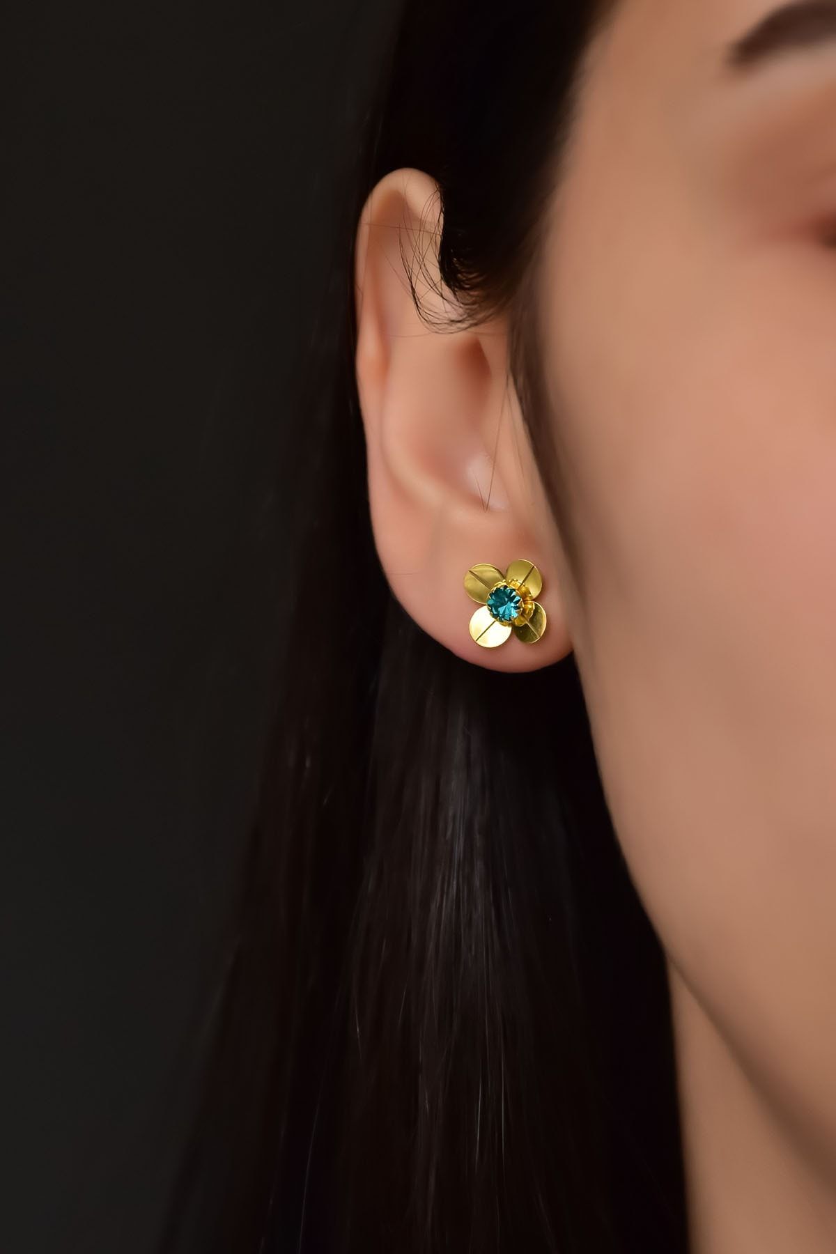 Etiketler925 Ayar Gümüş Gold Kaplama Aralık Ayı Doğum Taşlı Frezya Çiçeği Küpe