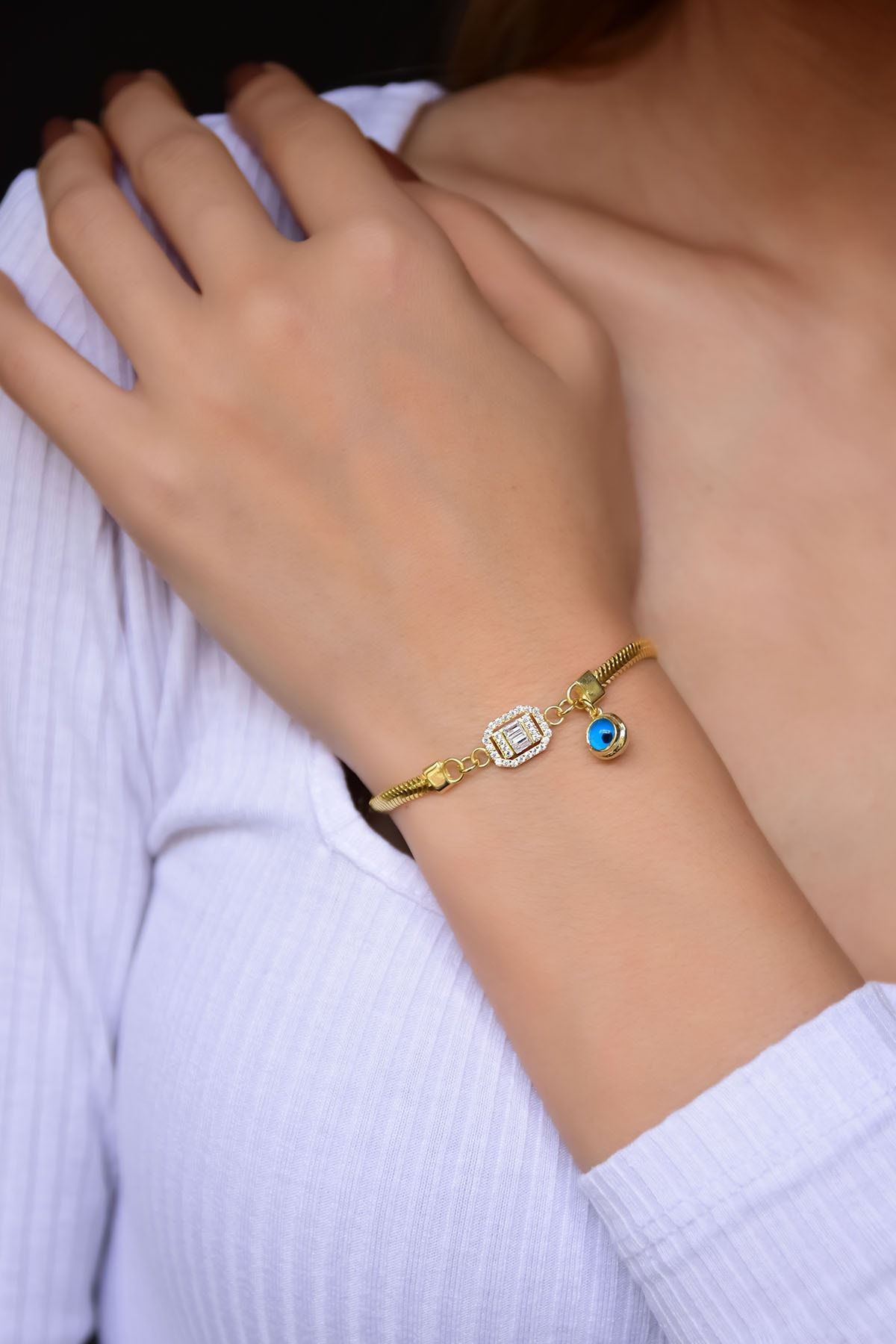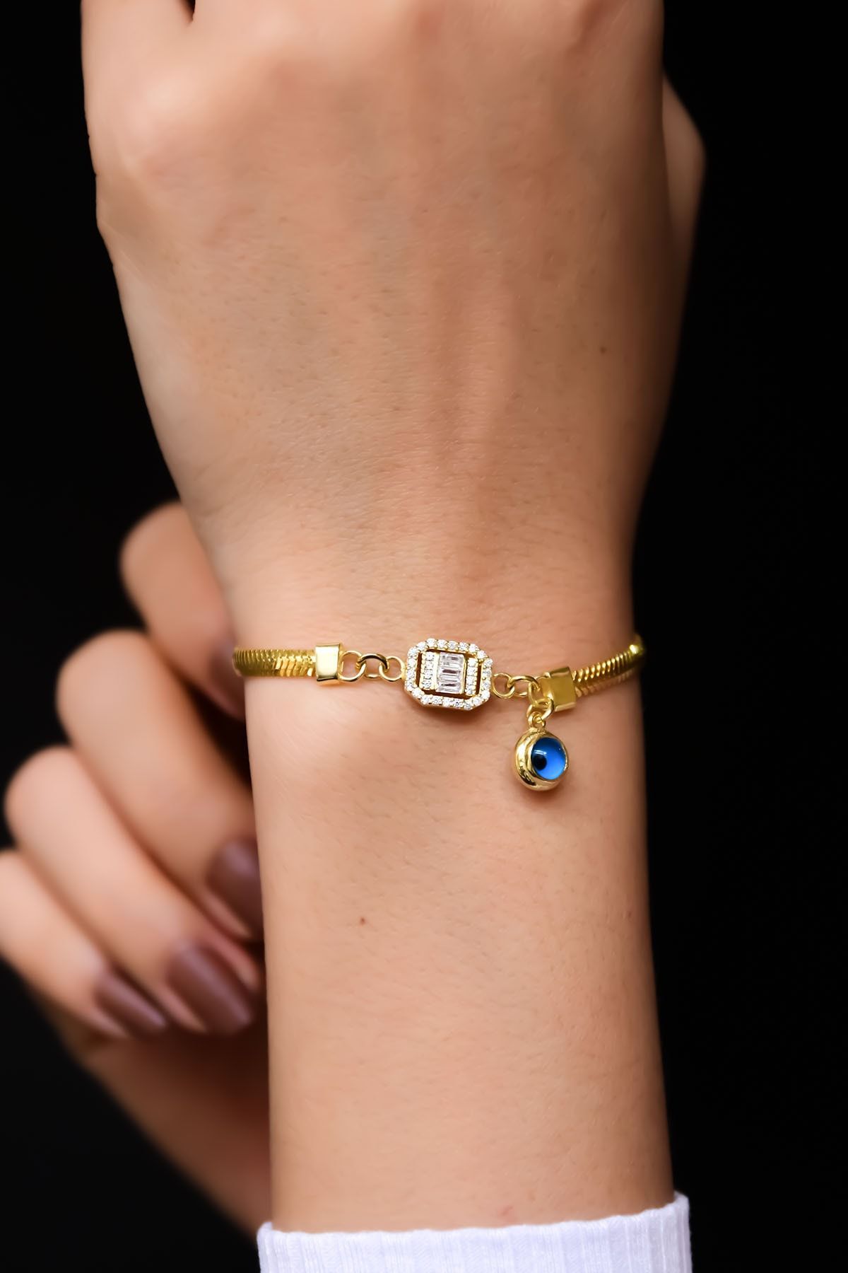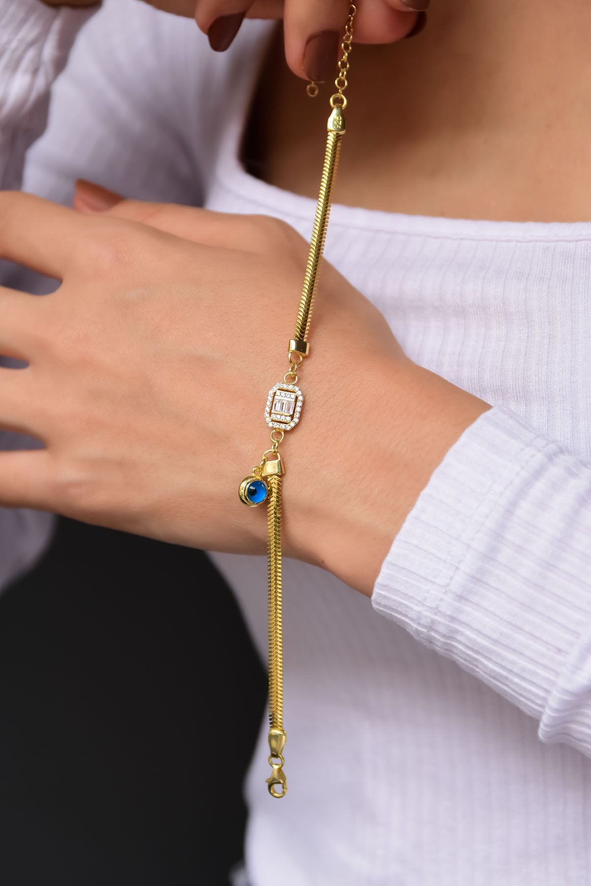 Maden : 925 Ayar Gümüş. Kaplama: Gold. Bileklik Zincir Uzunluğu: 18 cm. Taş: Zirkon. Ürün Ağırlığı : 5,03 Gr ( +-). Gümüş ve değerli taşlar nedeniyle belirtilen ortalama ürün ağırlığında ± %5 sapma olabilmektedir. Teslimat: Ürün ahşap hediye kutusunda gönderilecektir. Kullanım: Parfüm, dezenfektan, çamaşır suyu gibi kimyasallardan uzak tutunuz.