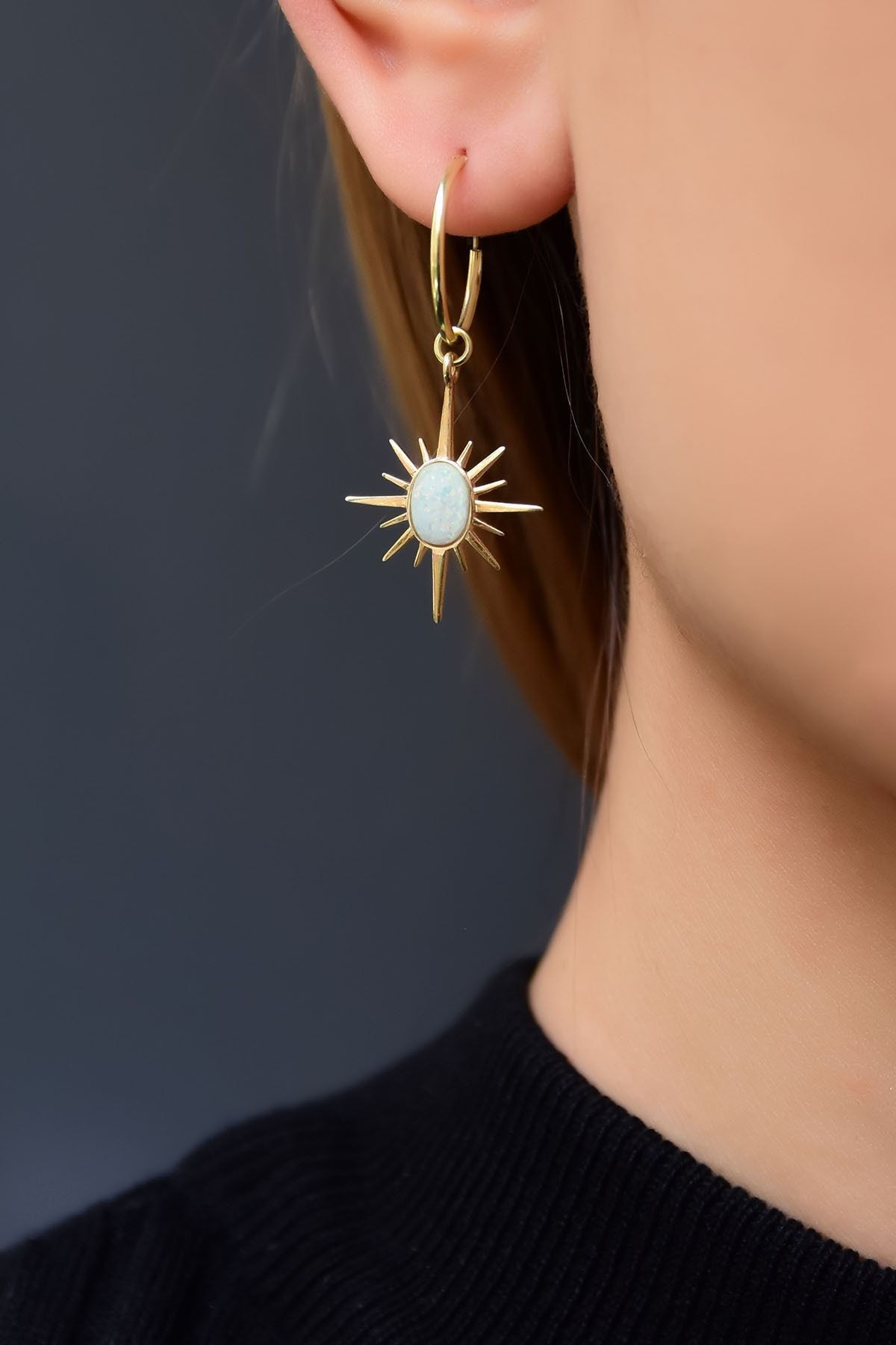 Maden : 925 Ayar Gümüş. Kaplama: Gold. Halka Çapı:1,5 cm En x Boy: 2*2,5 cm. Ürün Ağırlığı :2,95 Gr ( +-). Gümüş ve değerli taşlar nedeniyle belirtilen ortalama ürün ağırlığında ± %10 sapma olabilmektedir. Teslimat: Ürün ahşap hediye kutusunda gönderilecektir. Kullanım: Parfüm, dezenfektan, çamaşır suyu gibi kimyasallardan uzak tutunuz.