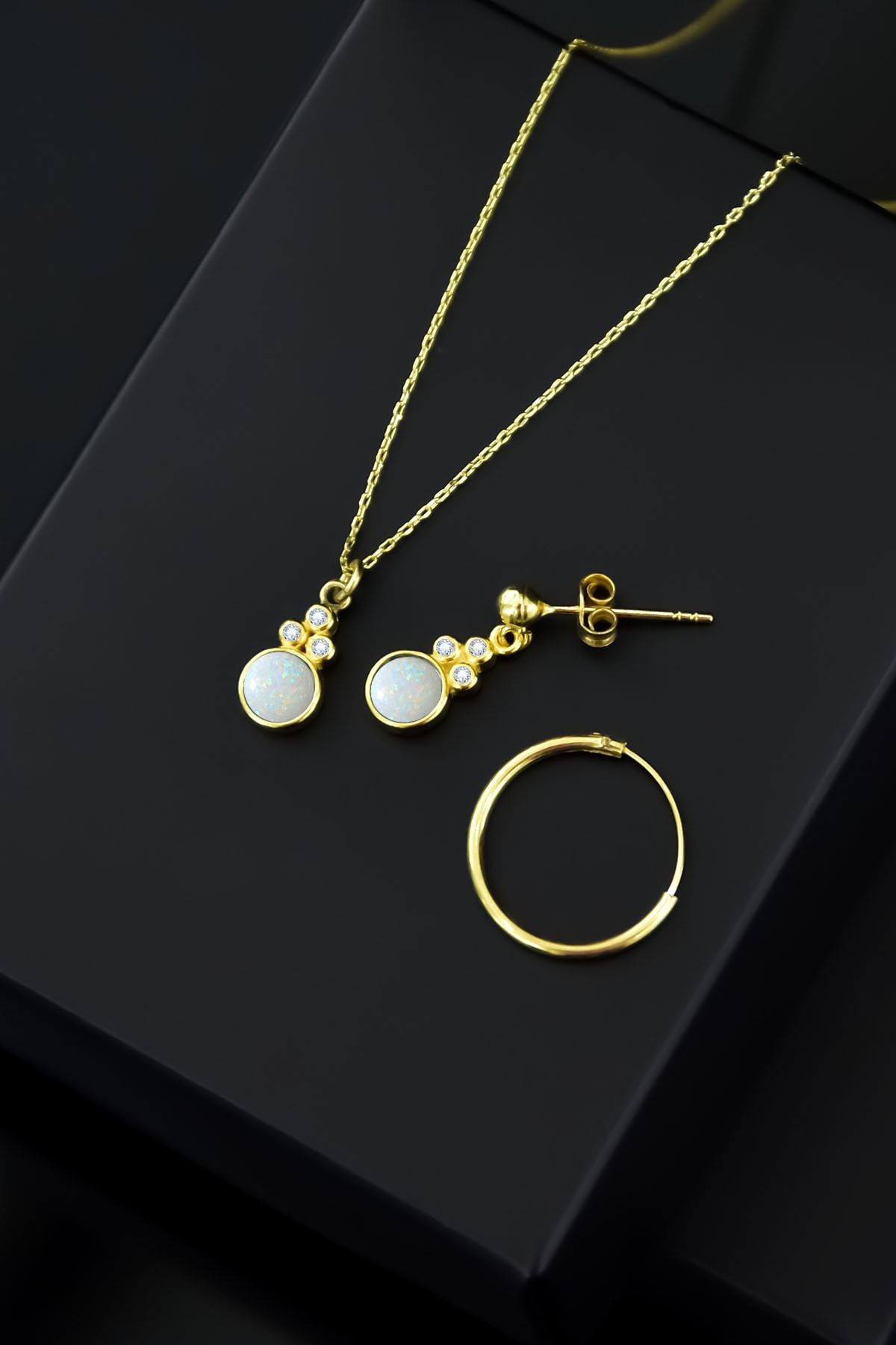 | Etiketler | 925 Ayar Gümüş Gold Kaplama Beyaz Opal Yuvarlak Kolye Çivili Ve Halka Küpe Set |